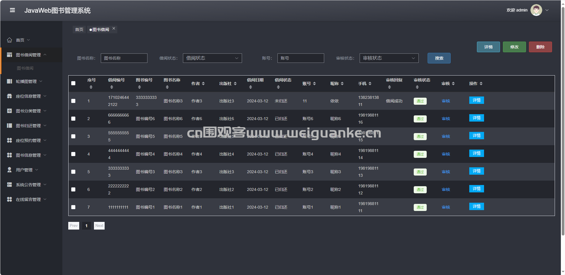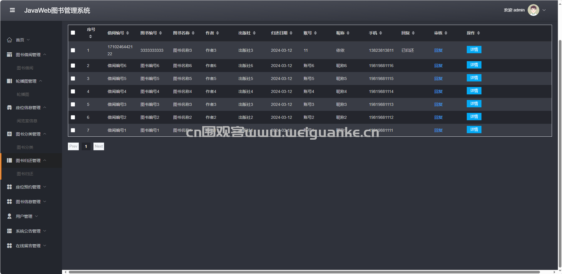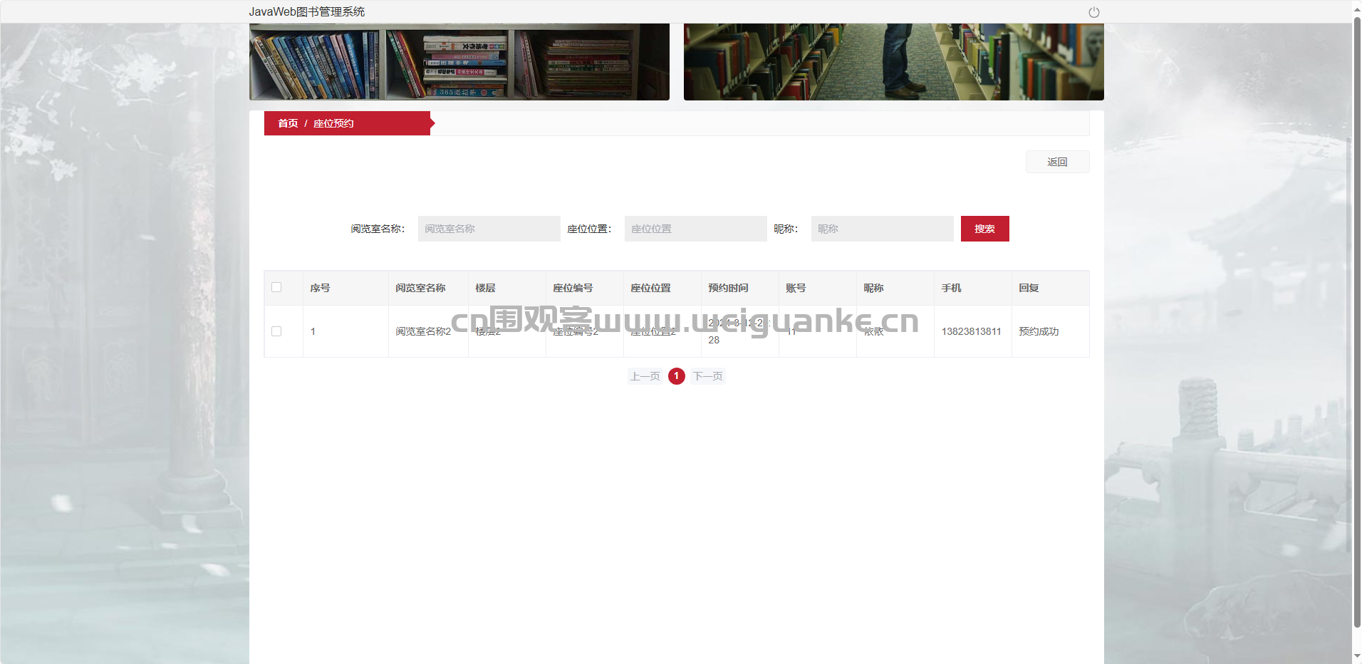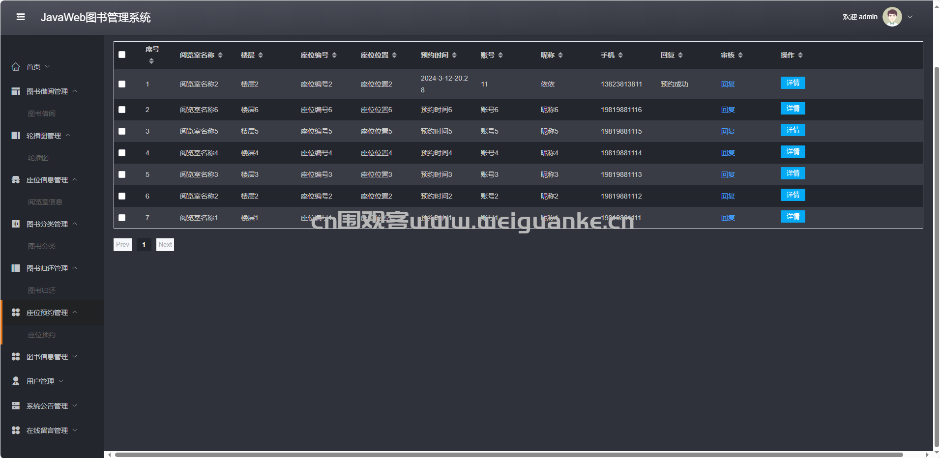 座位预约管理:审核、取消、查询读者预约记录。