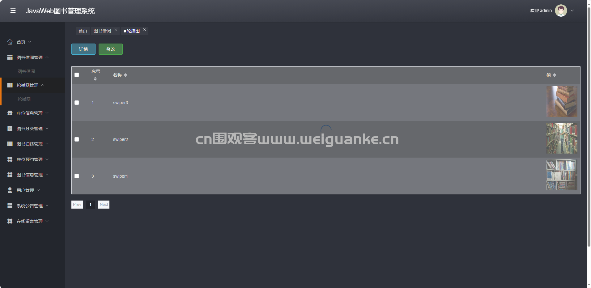 轮播图管理:增删改查首页轮播图片及链接。