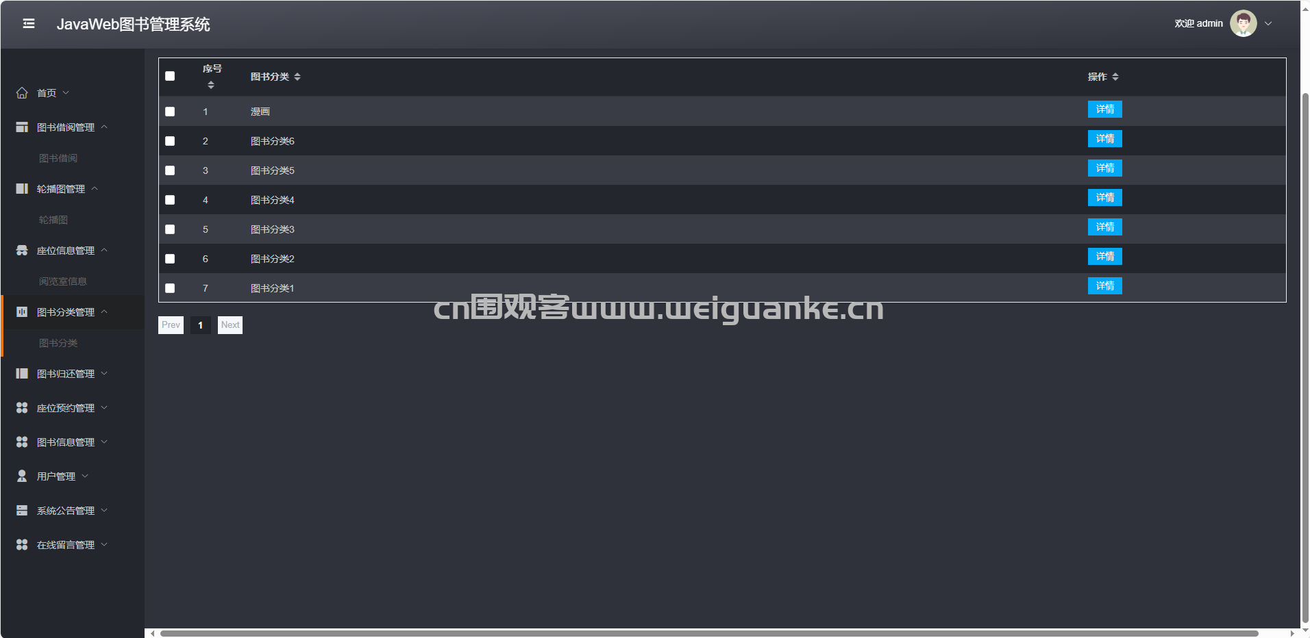 图书分类管理:增删改查“文学、科技”等分类。