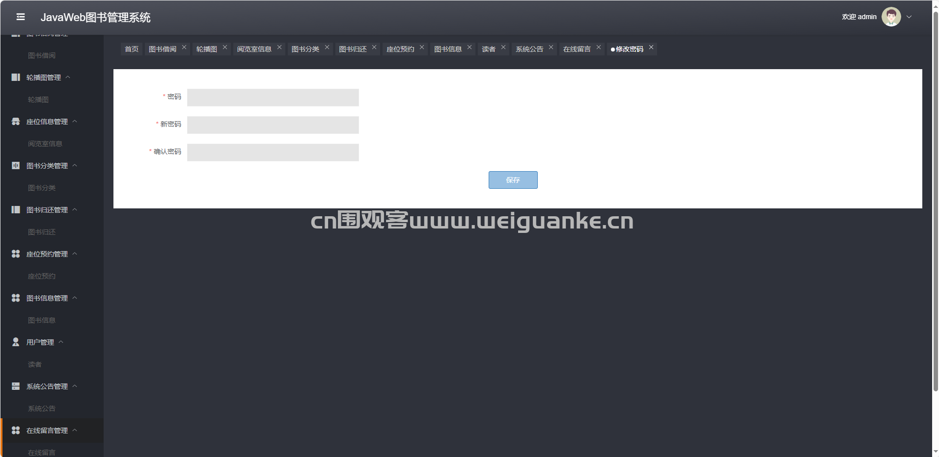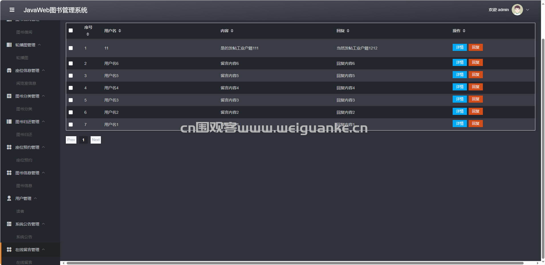 在线留言管理:查看、回复、删除读者留言。