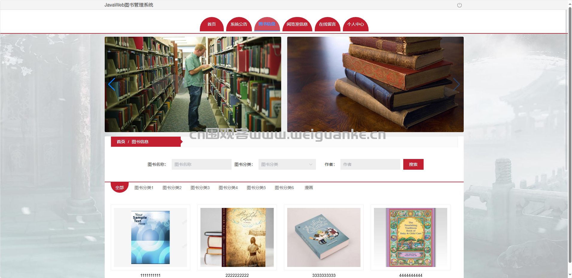 我的收藏管理:收藏/取消收藏图书。