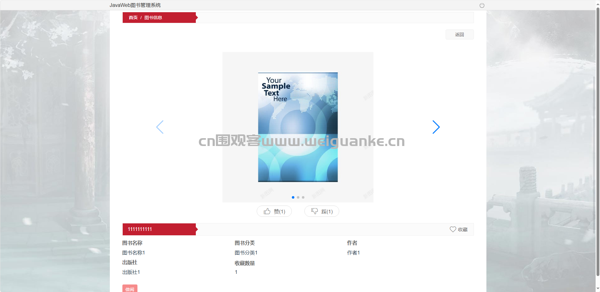 图书信息:检索、查看、收藏图书详情。