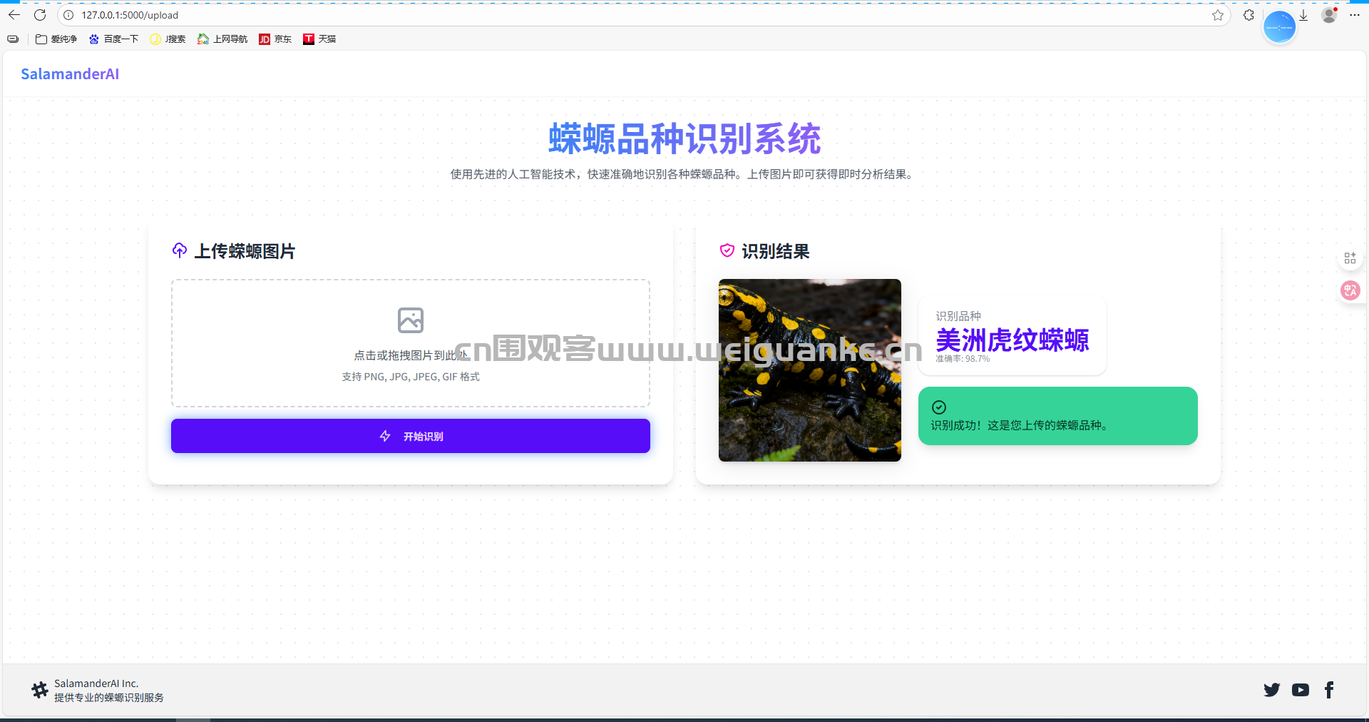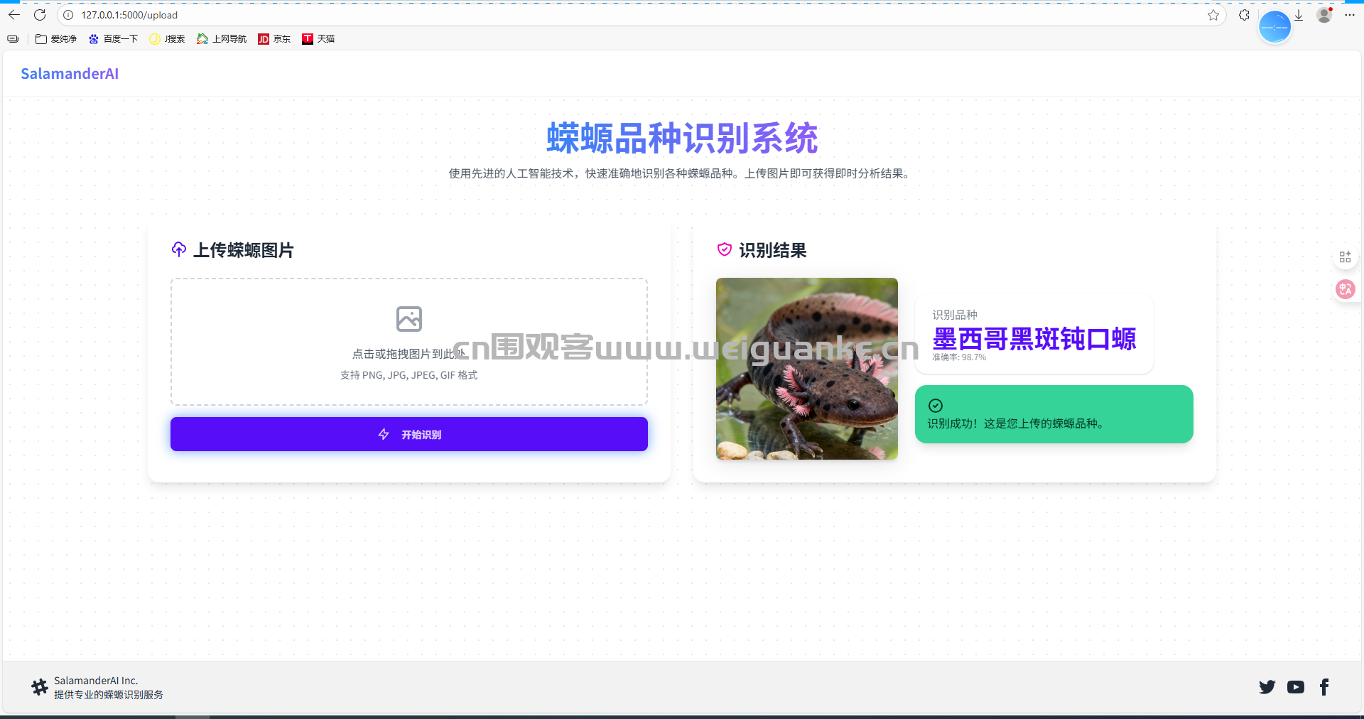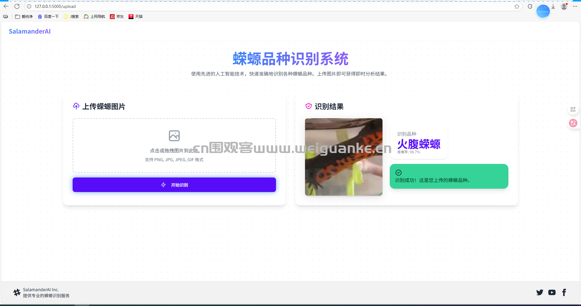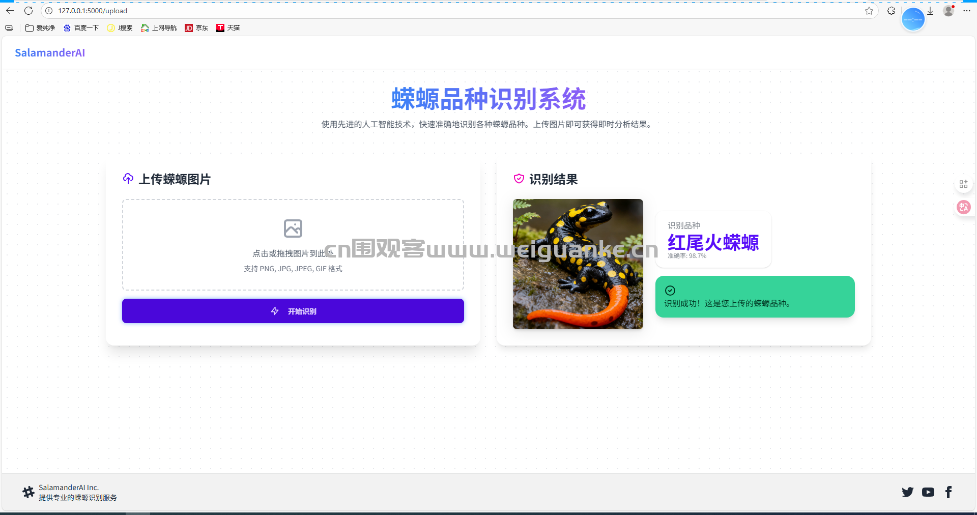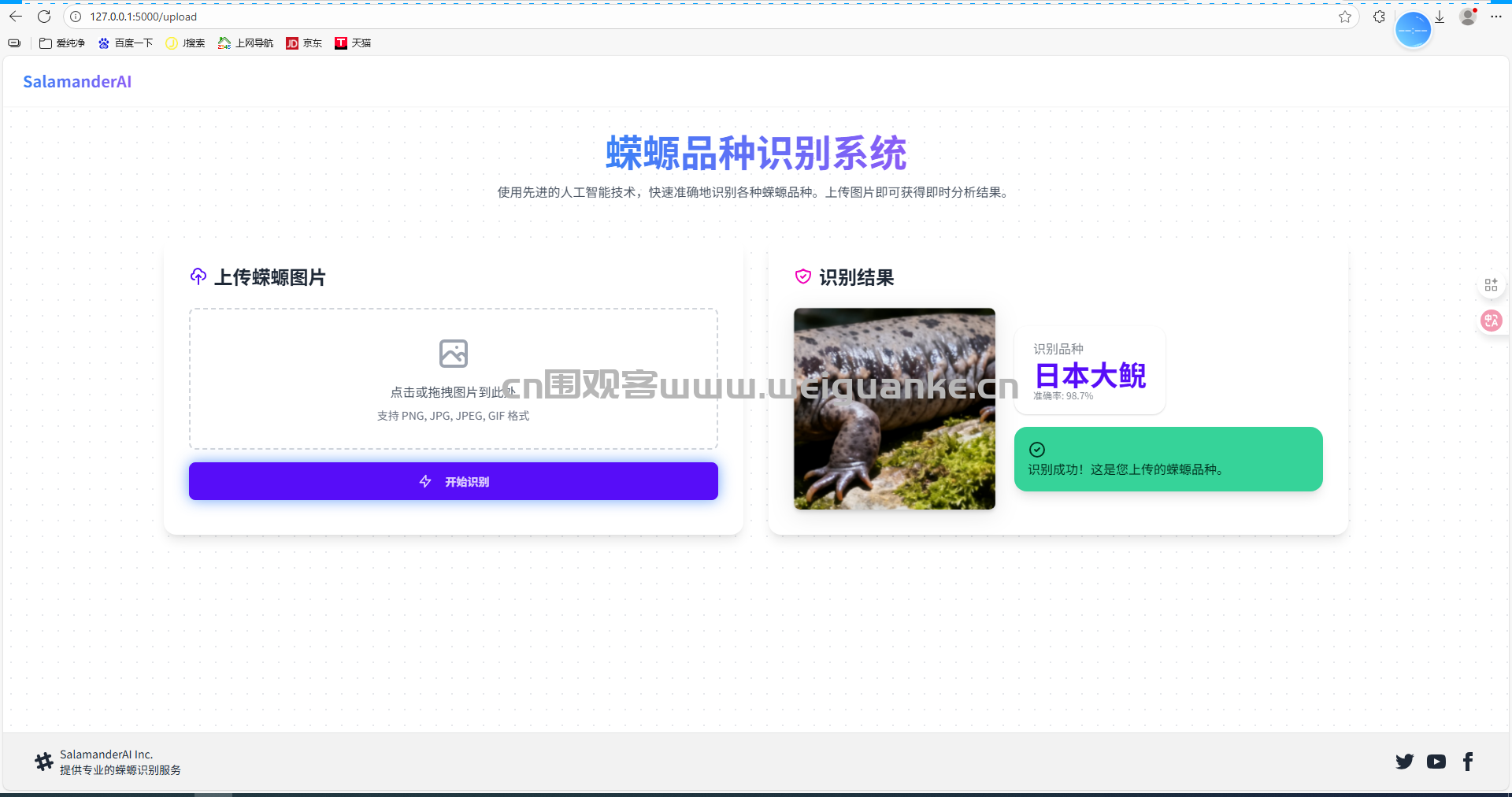 zhe, zhuo python 9天前 基于机器学习的蝾螈检测系统 项目描述 基于机器学习的蝾螈检测系统 项目功能: 图像识别蝾螈图像品种 运行环境 开发工具:PyCharm 运行环境:python3.8 此配置为本人调试所用,仅供参考 项目技术: 后端:flask SVM 以上系统源码经过技术整理与调试,确保能正常运行