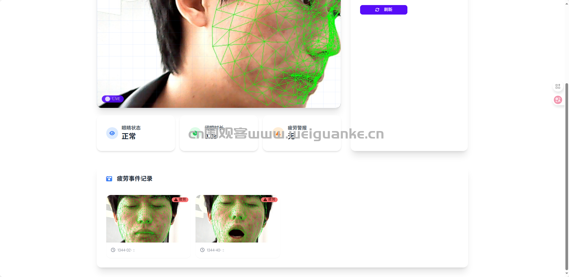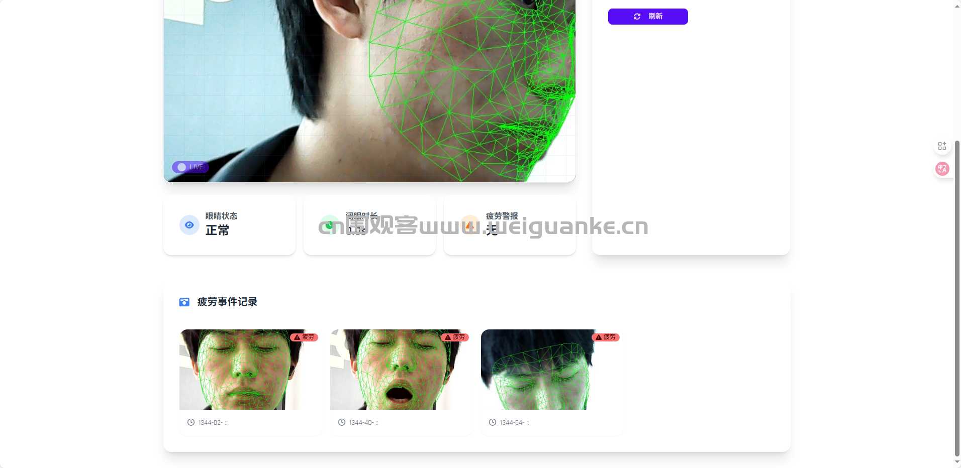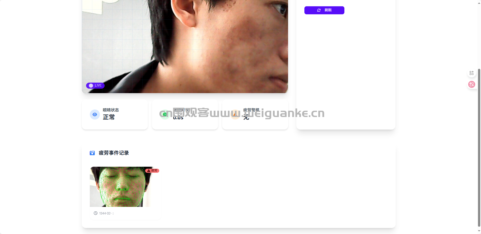 zhe, zhuo python 9天前 基于EAR的疲劳检测系统 项目描述 基于EAR的疲劳检测系统 项目功能: 摄像头实时识别疲劳检测 运行环境 开发工具:PyCharm 运行环境:python3.8 此配置为本人调试所用,仅供参考 项目技术: 后端:flask 以上系统源码经过技术整理与调试,确保能正常运行