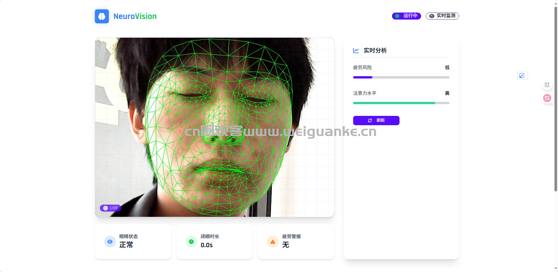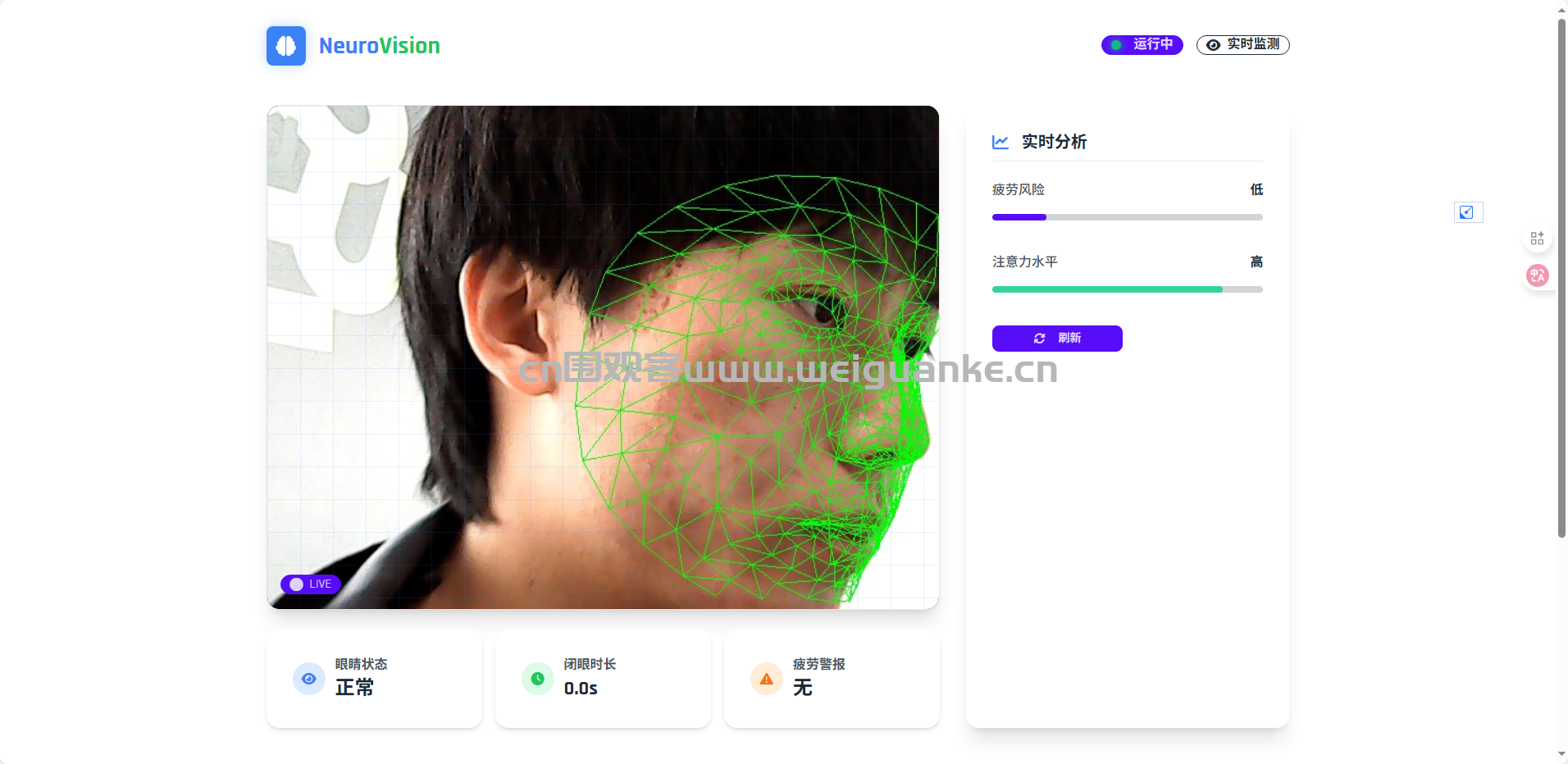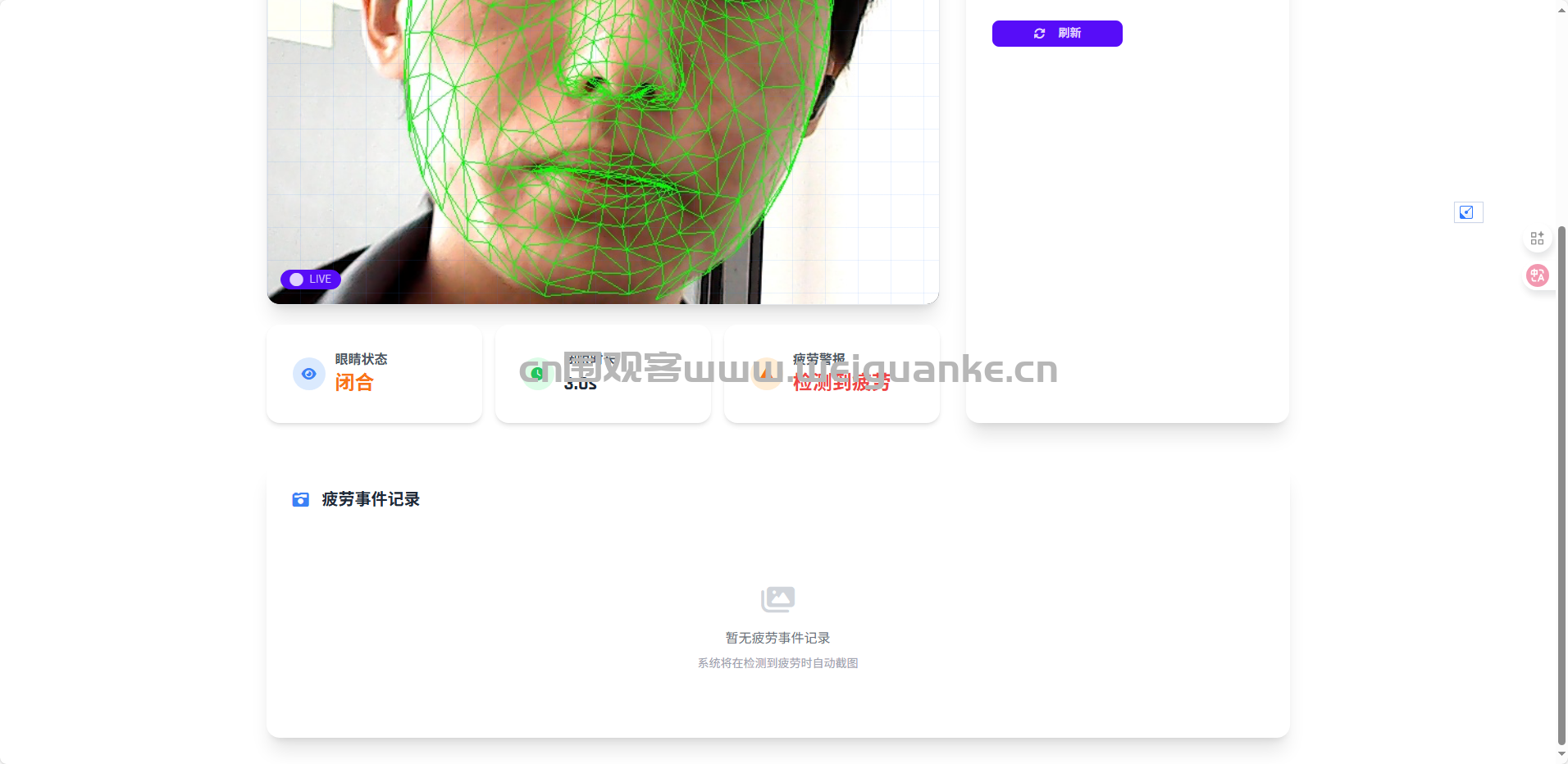 zhe, zhuo python 9天前 基于EAR的疲劳检测系统 项目描述 基于EAR的疲劳检测系统 项目功能: 摄像头实时识别疲劳检测 运行环境 开发工具:PyCharm 运行环境:python3.8 此配置为本人调试所用,仅供参考 项目技术: 后端:flask 以上系统源码经过技术整理与调试,确保能正常运行