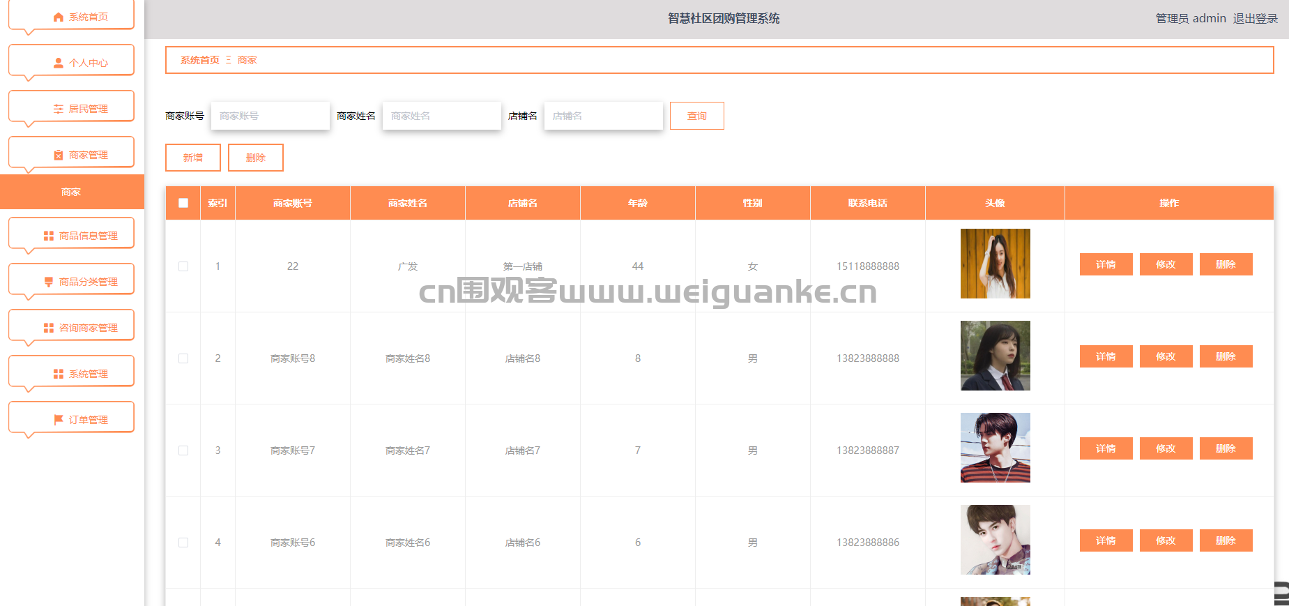 – 管理入驻商家信息,审核商家资质,查看商家状态,支持启用/禁用商家账号。