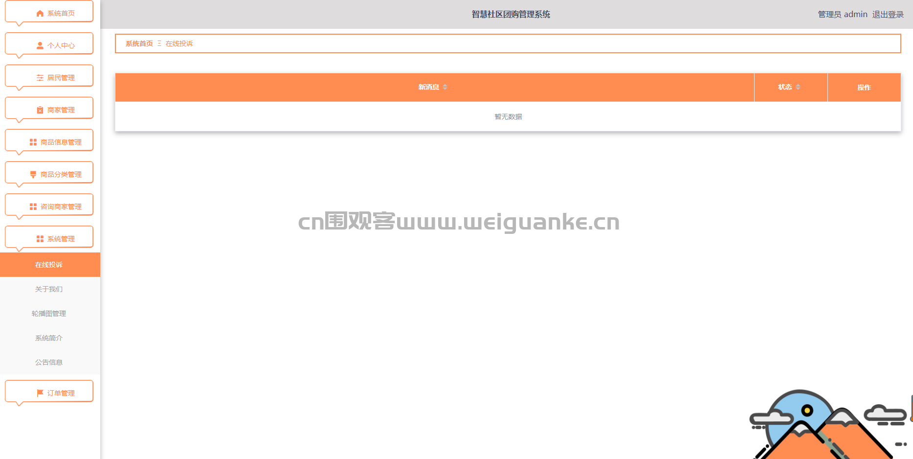 – 在线投诉:查看、处理用户投诉,标记处理进度与结果。