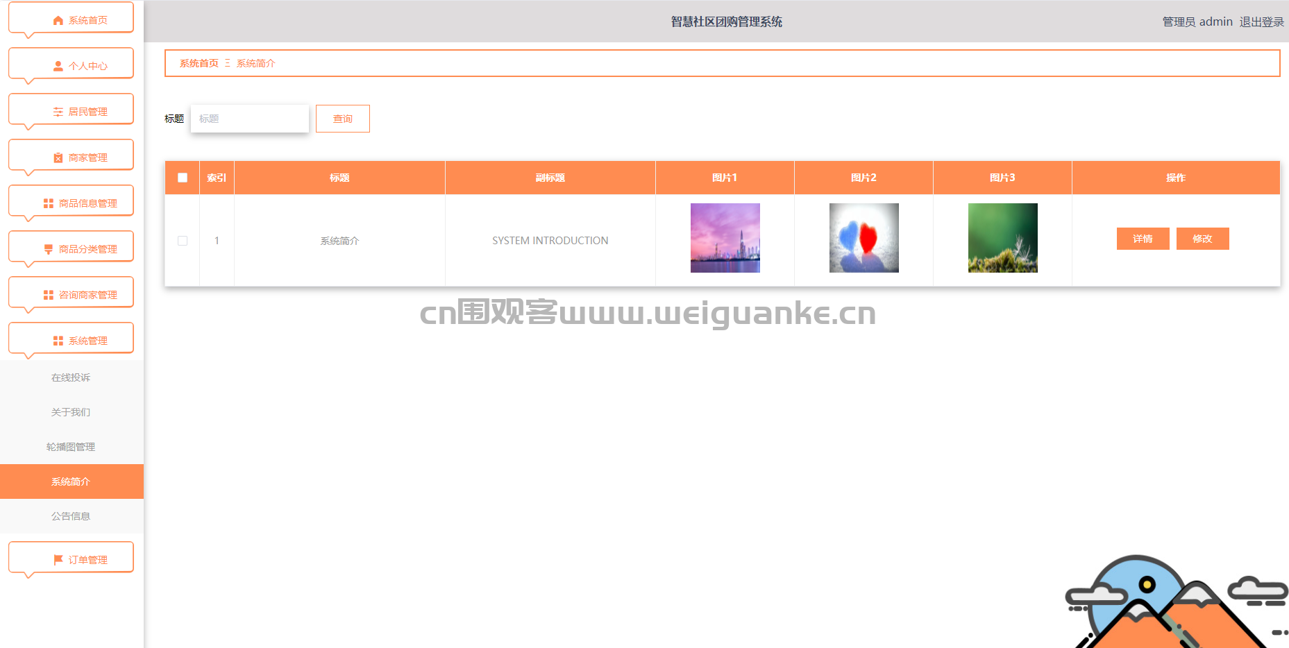 – 系统简介:编辑平台系统介绍内容,展示给前端用户。