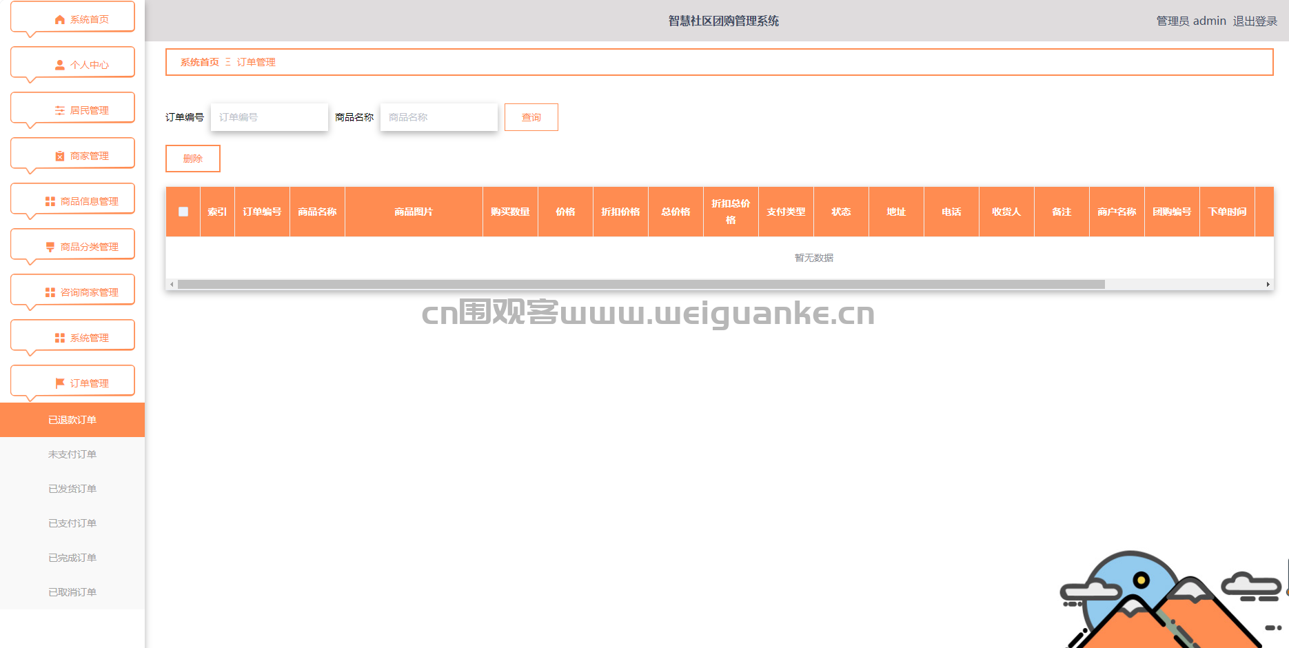 – 已退款订单:查看所有已退款订单详情,支持导出记录。