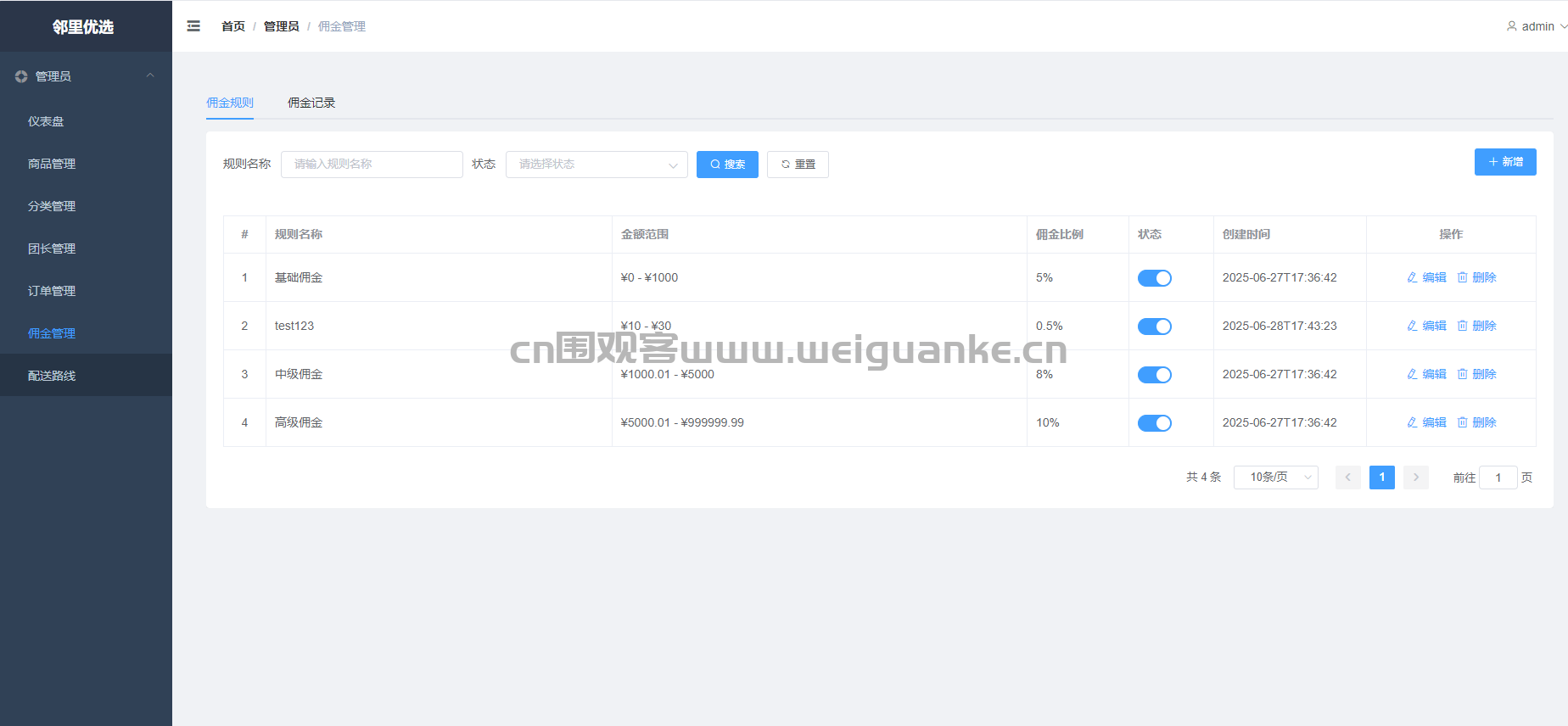 佣金管理 设置与发放佣金