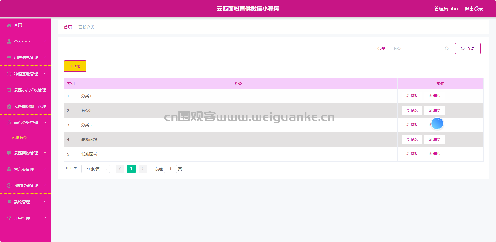 面粉分类管理:系统字典设定高筋、中筋、低筋及专用粉属性,支持扩展自定义标签。