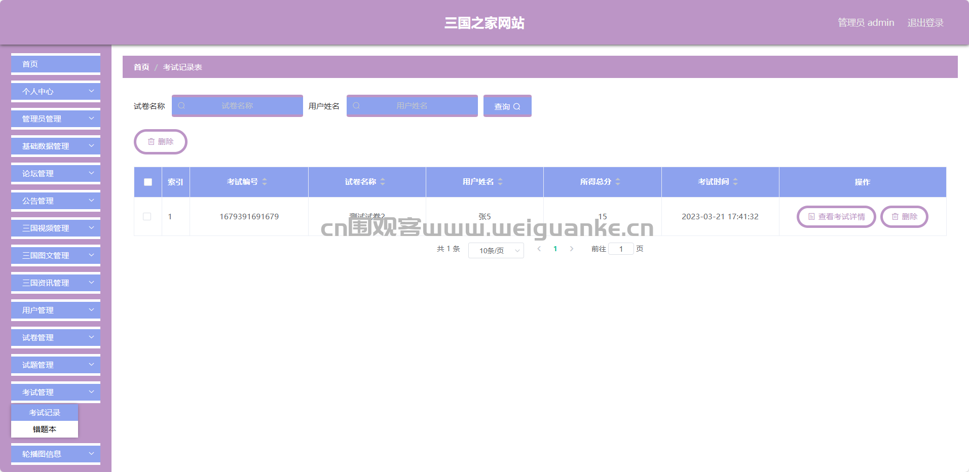 考试管理:设置考试时间、时长与参考人员,实时监控考试进度与成绩统计。