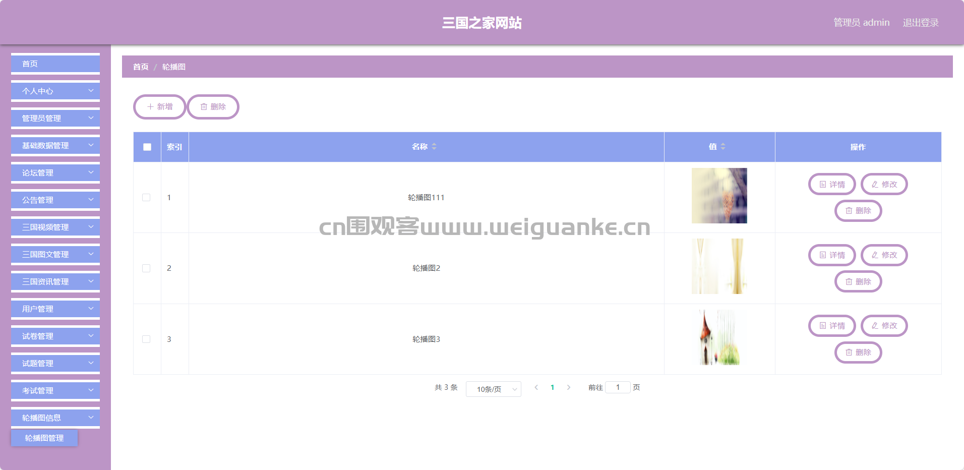 轮播图信息:上传、排序与关联外链,首页焦点图随时更新,提升重要内容曝光率。