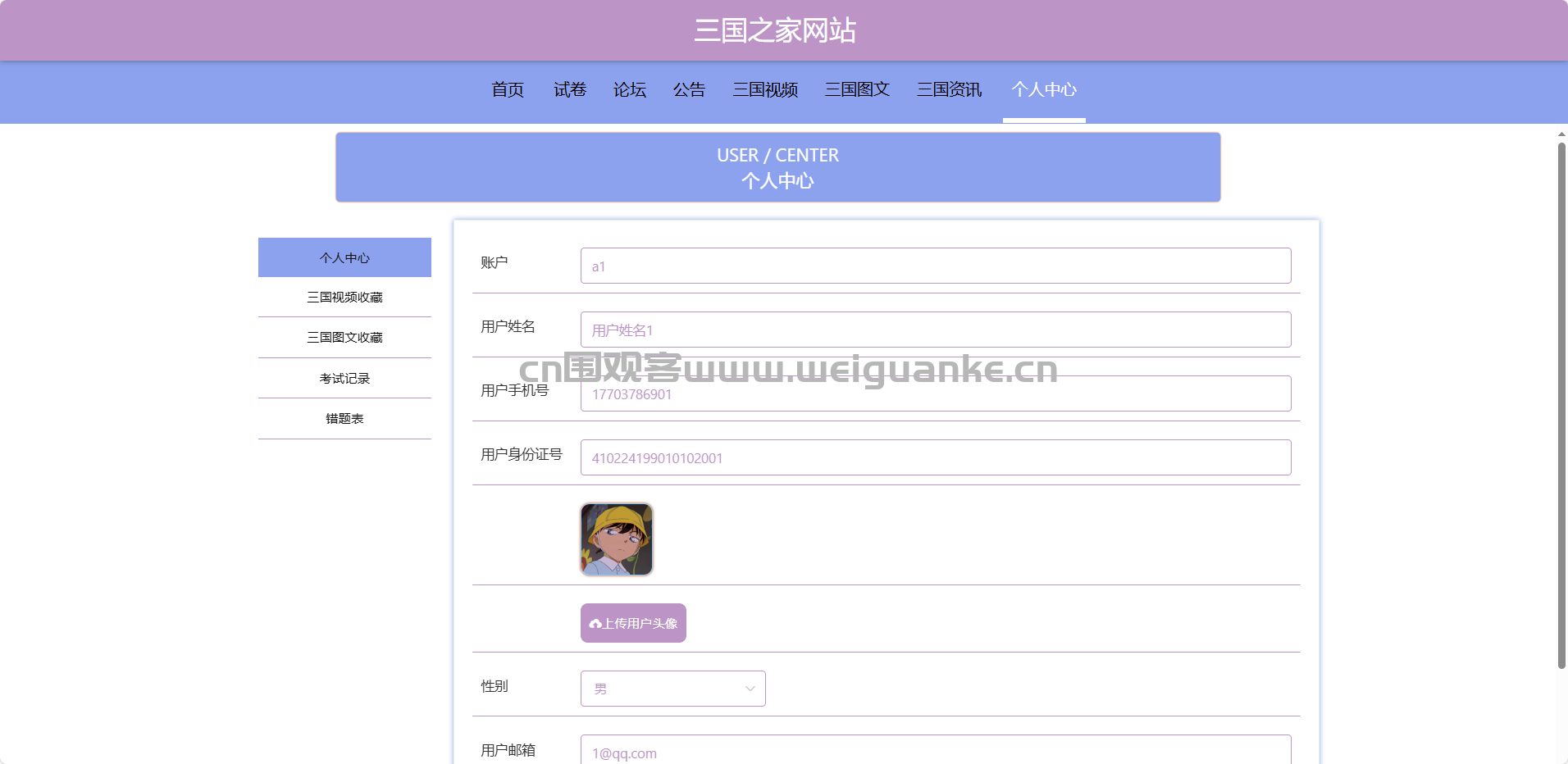 个人中心:用户可在此查看与编辑个人资料、修改密码及浏览个人历史操作记录。