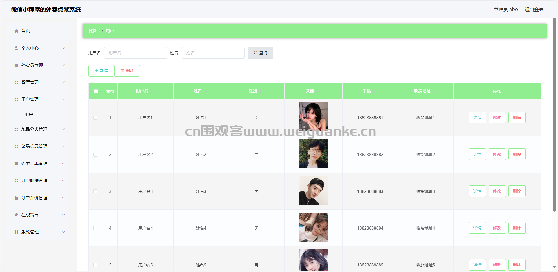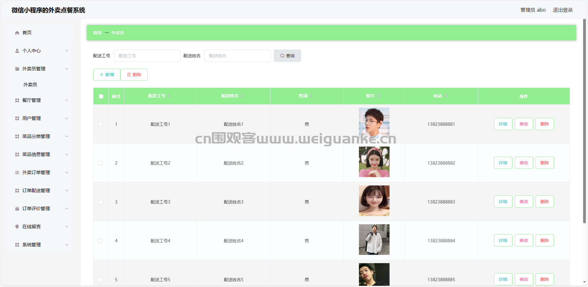 4.外卖员管理:查看、添加、编辑、删除外卖员信息