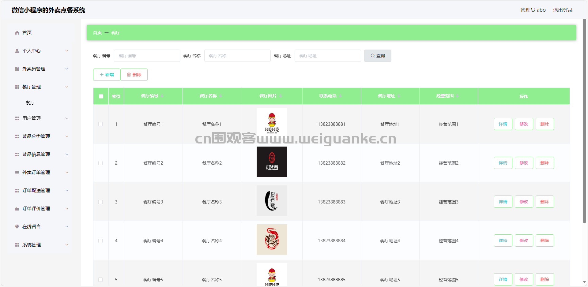 3.餐厅管理:查看、添加、编辑、删除餐厅信息