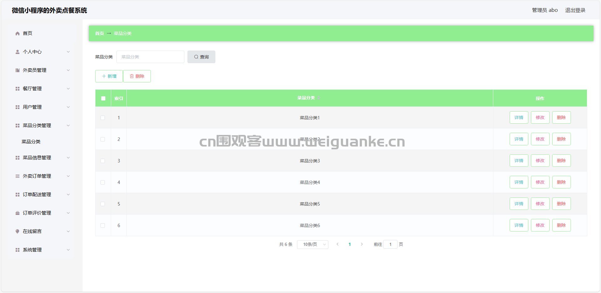 5.菜系分类管理:查看、添加、编辑、删除菜系信息