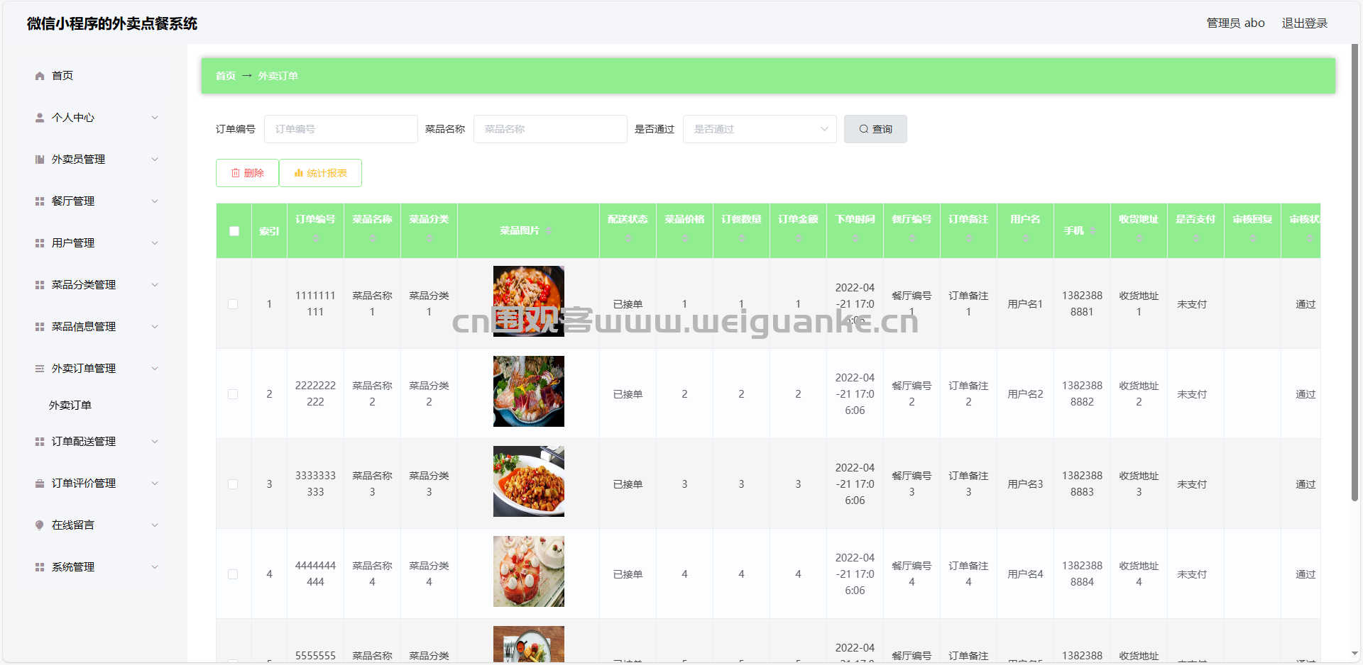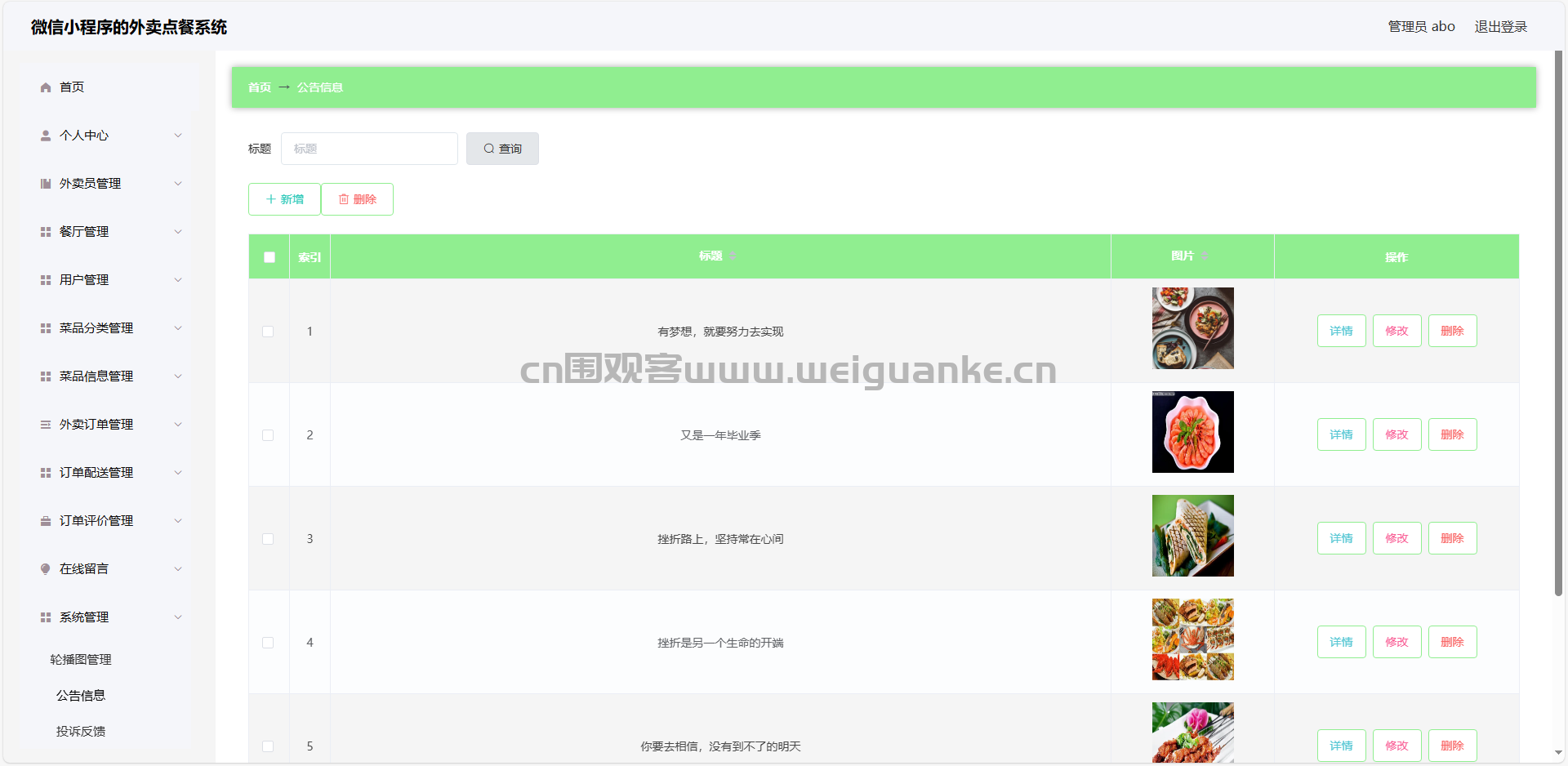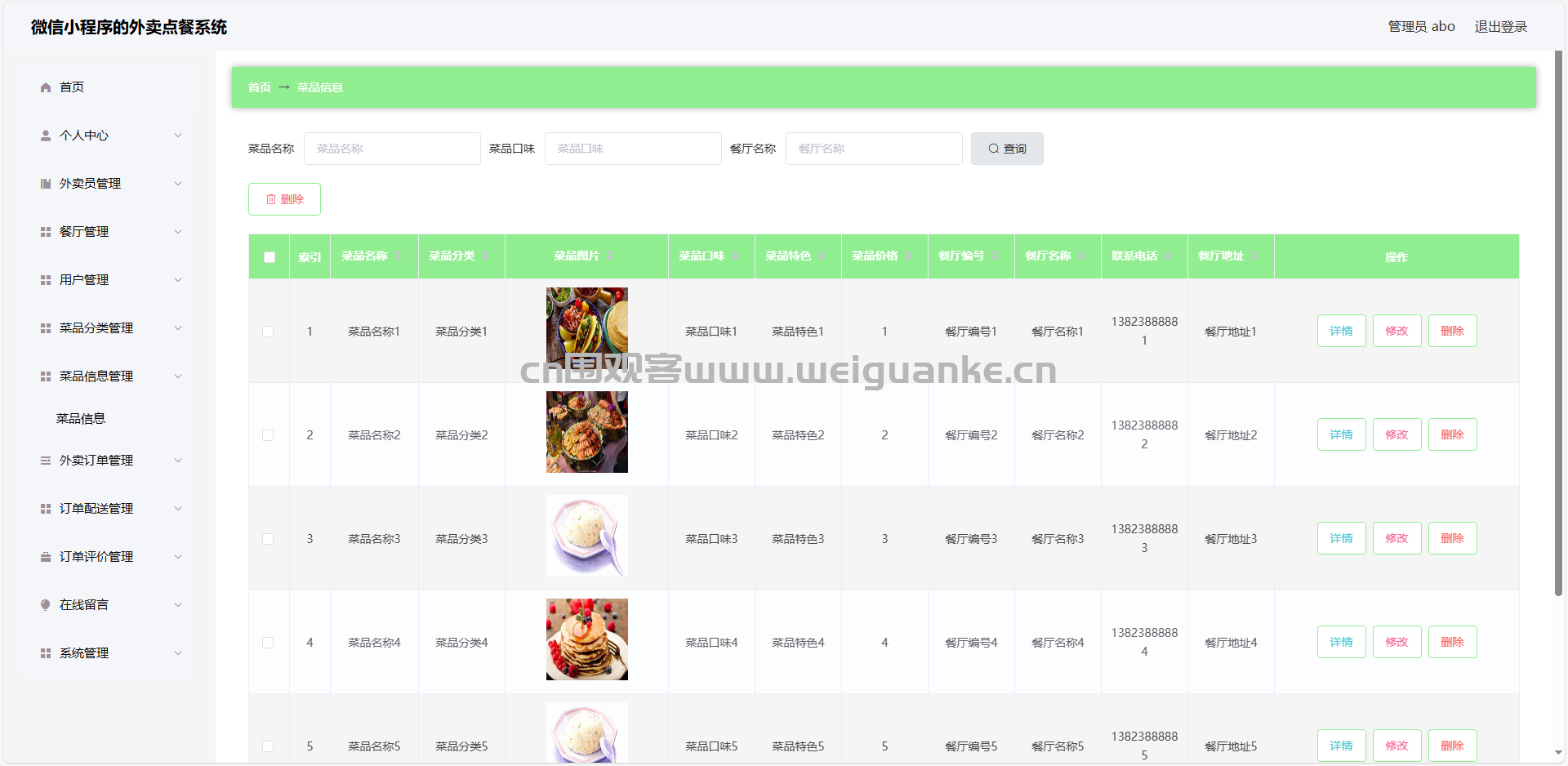 7.外卖订单管理:查看、编辑、删除外卖订单信息