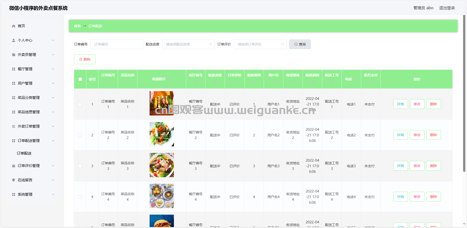 8.订单配送管理:查看、编辑、删除配送信息