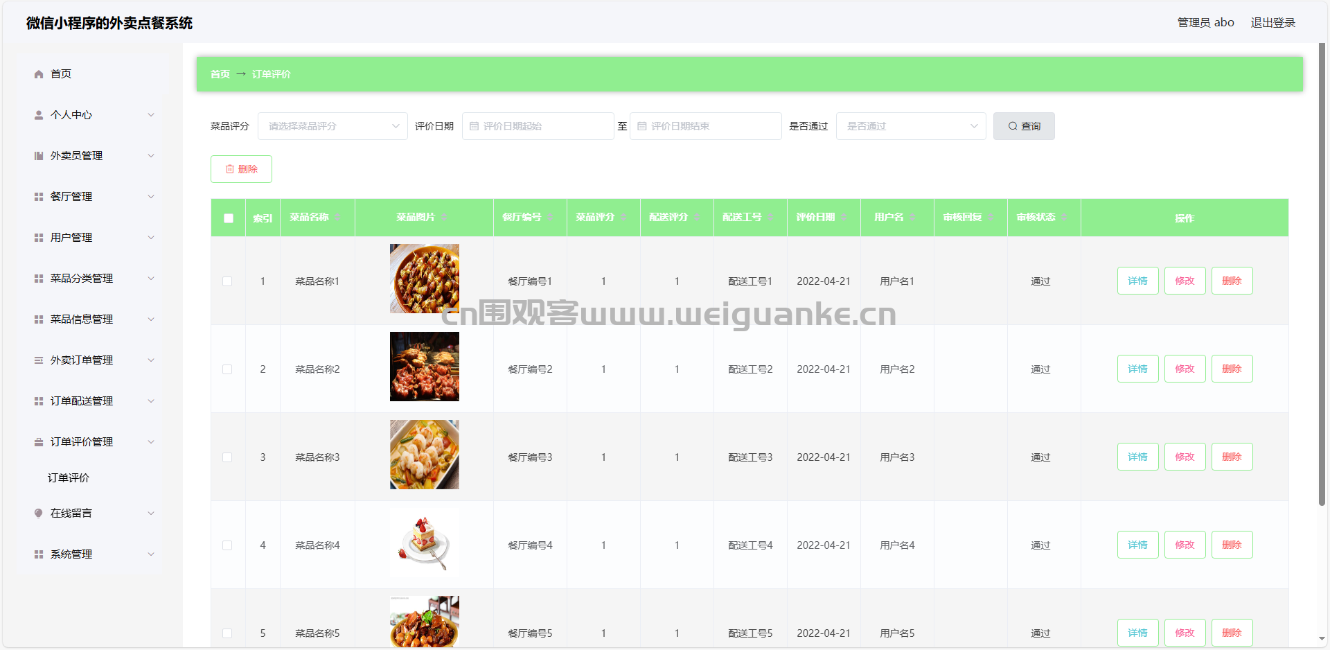 9.订单评价管理:查看、编辑、删除评价信息