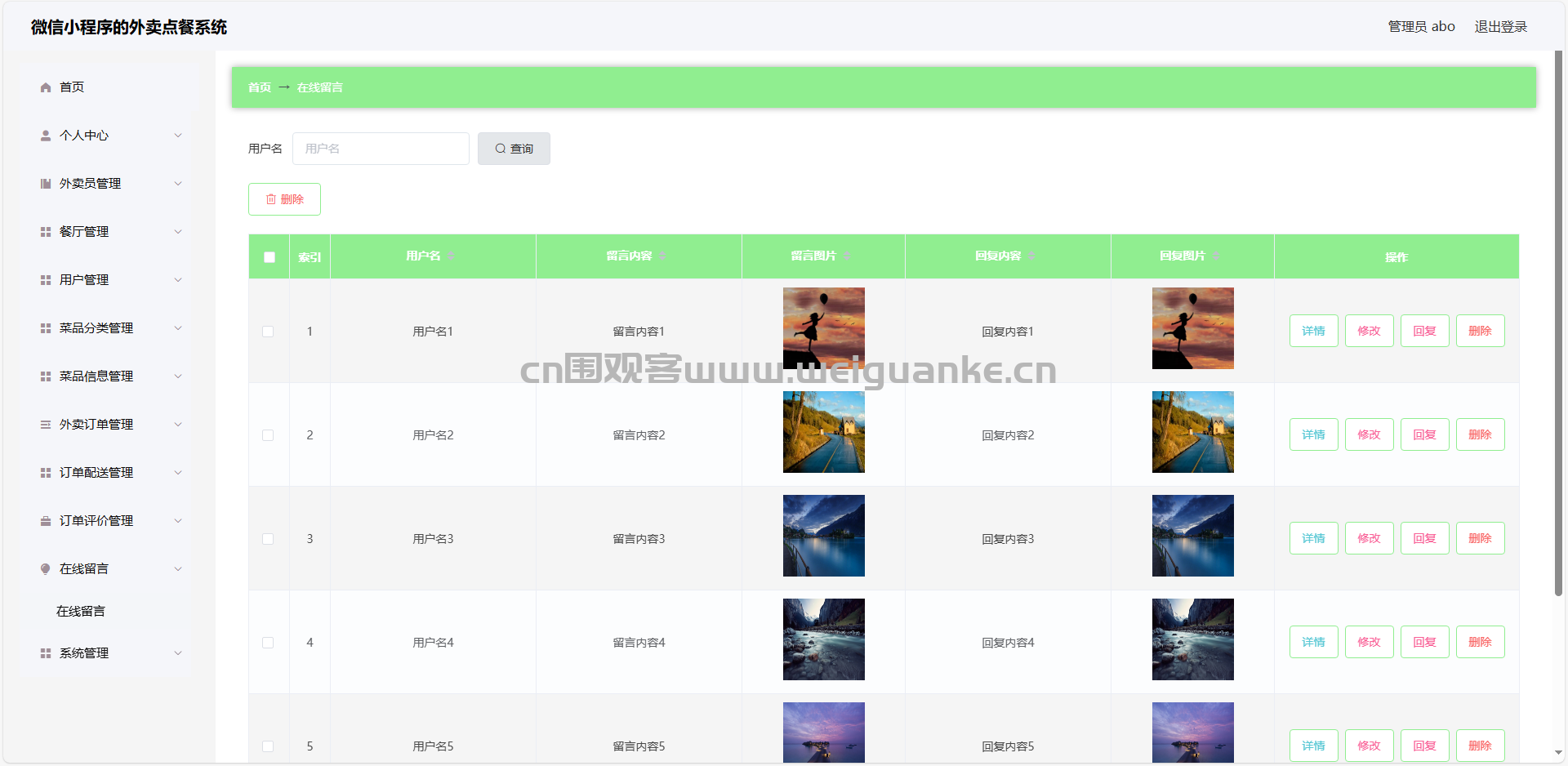 10.在线留言管理:查看、编辑、回复、删除留言信息