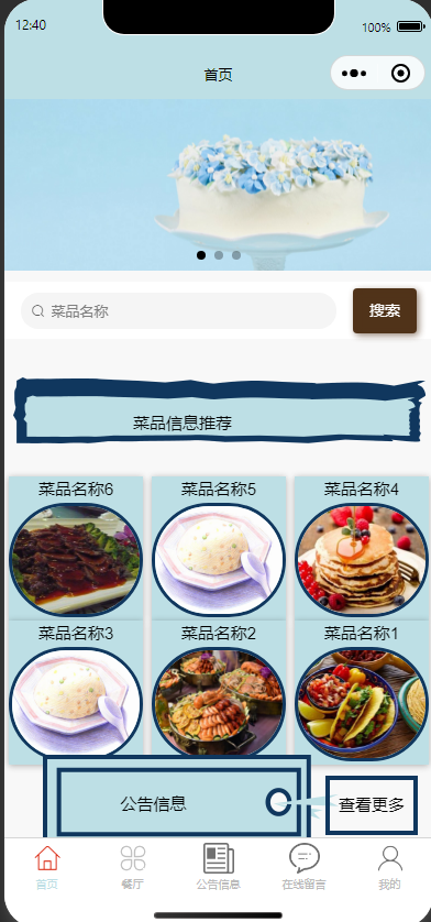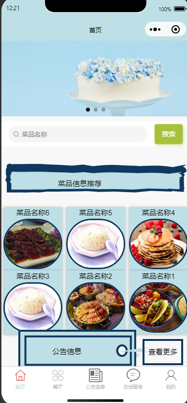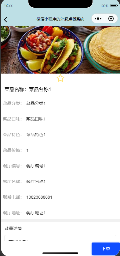 2.餐厅信息:查看菜品信息进行收藏。