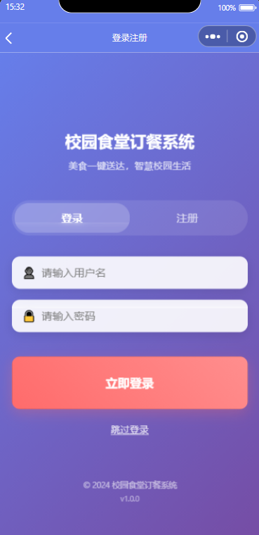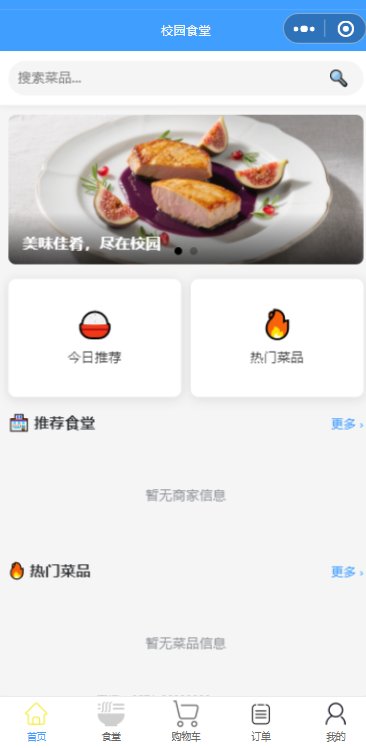 – 入口:展示平台主要功能入口,如食堂、购物车、订单等,方便用户快速访问。