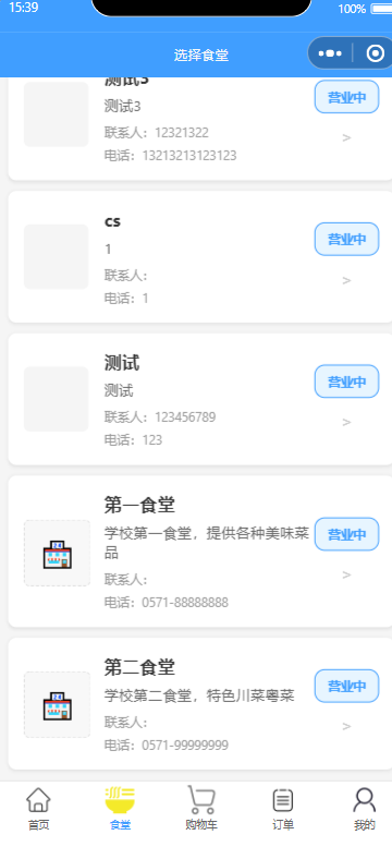 – 食堂列表:展示入驻食堂信息,包括食堂名称、营业时间、联系方式等,方便用户选择。
