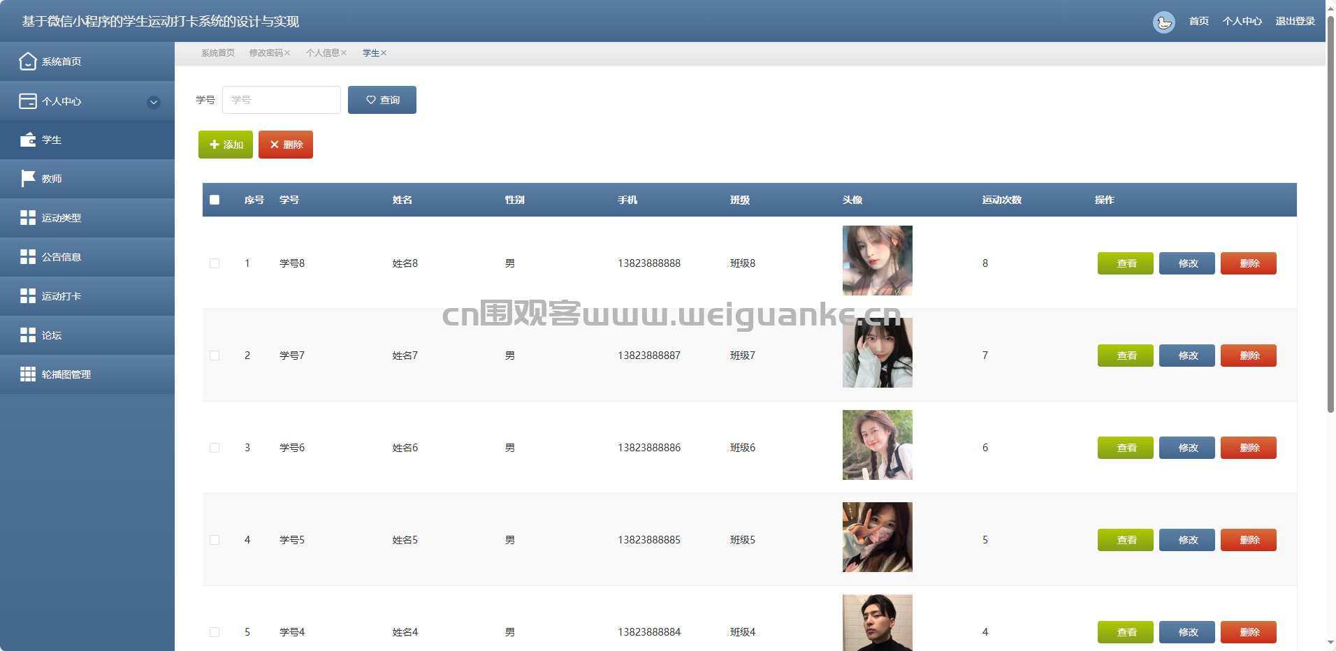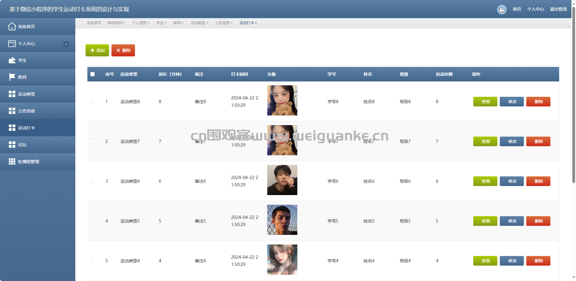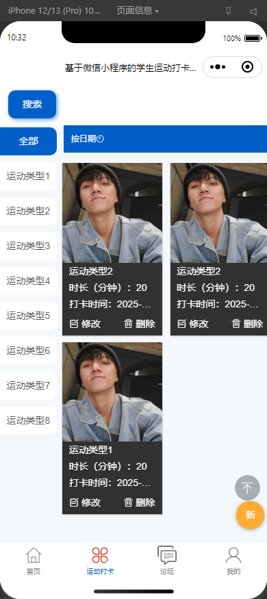 SpringBoot+Vue+微信小程序学生运动打卡系统,学生微信端每日打卡、刷公告、论坛互动,教师后台批阅、统计、管理,实现校园体育作业“打卡+分享+评分”数字化。