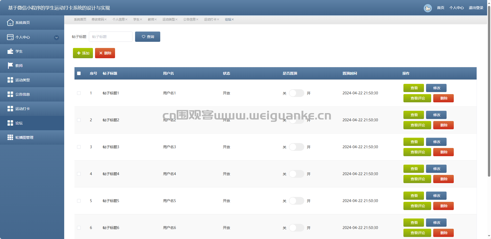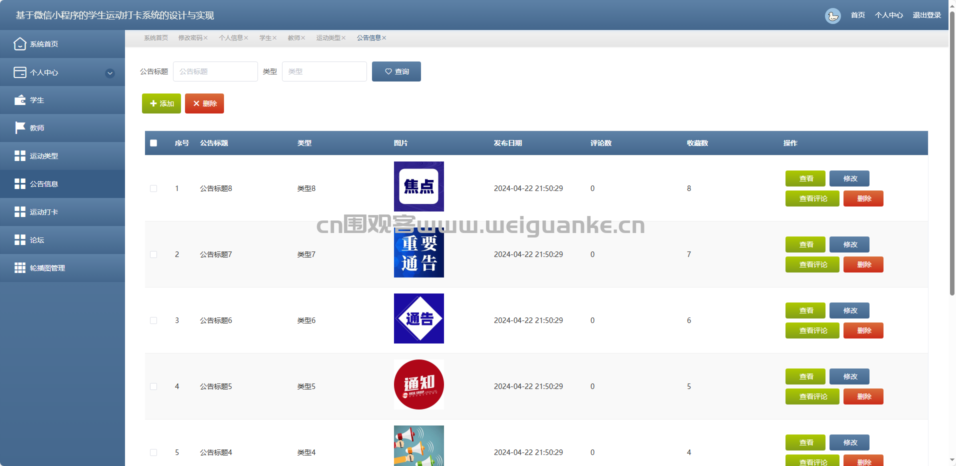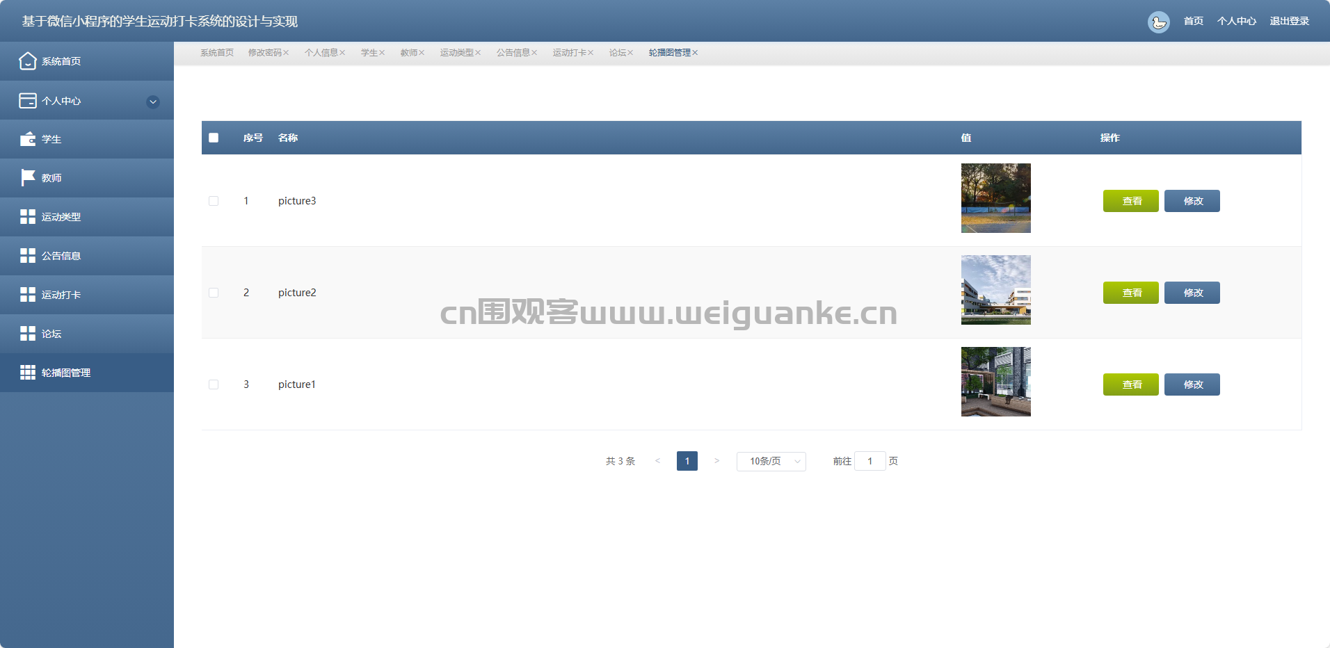 SpringBoot+Vue+微信小程序学生运动打卡系统,学生微信端每日打卡、刷公告、论坛互动,教师后台批阅、统计、管理,实现校园体育作业“打卡+分享+评分”数字化。
