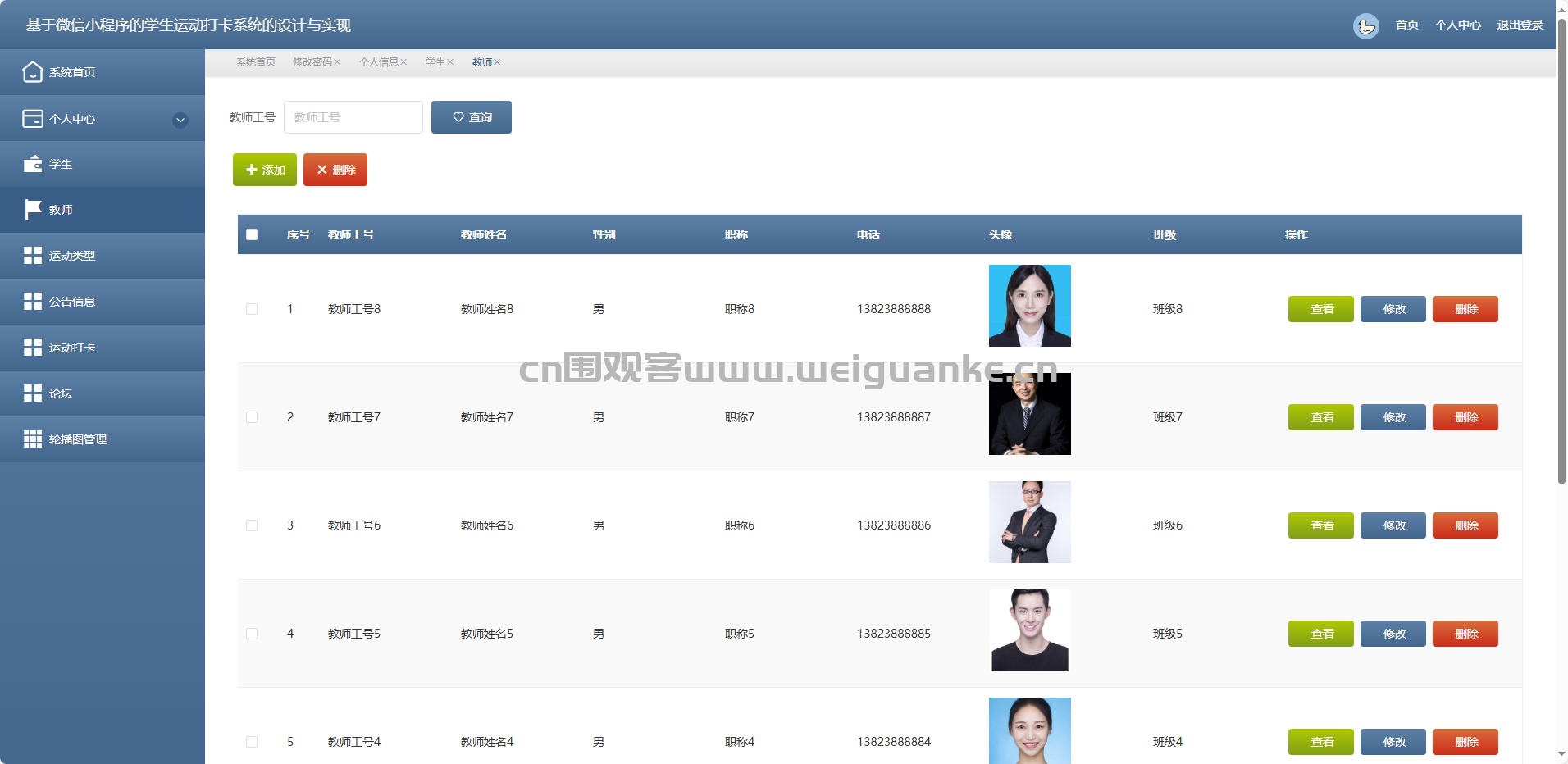 运动打卡:查看、删除、导出全部打卡记录;教师评分。