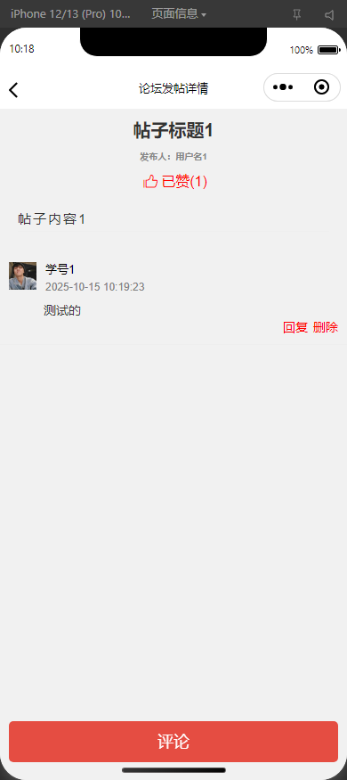 论坛:发帖、回帖、编辑、删除个人帖子。