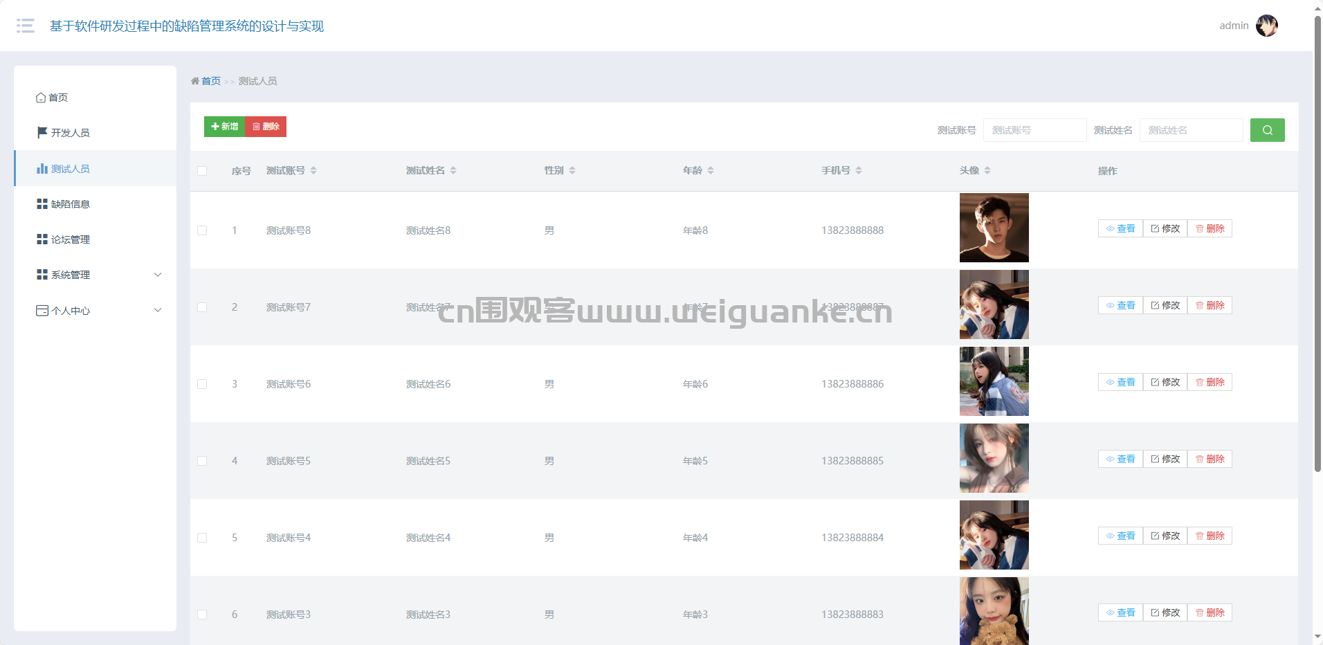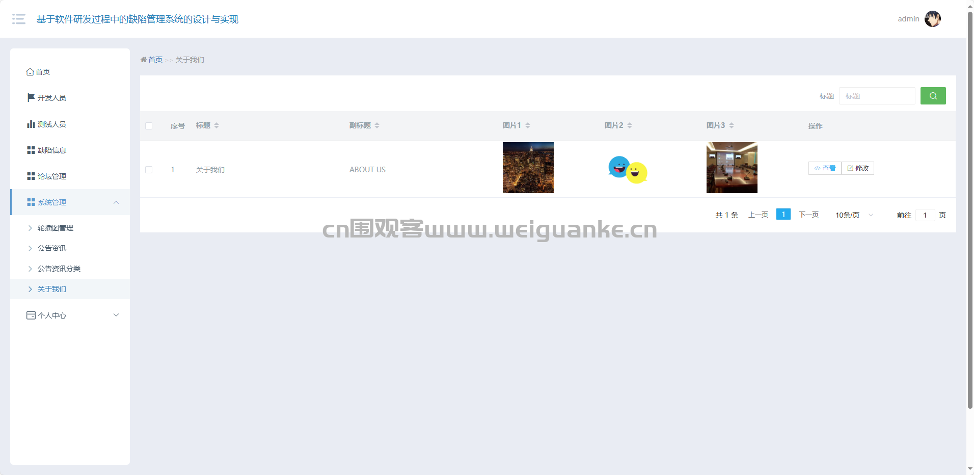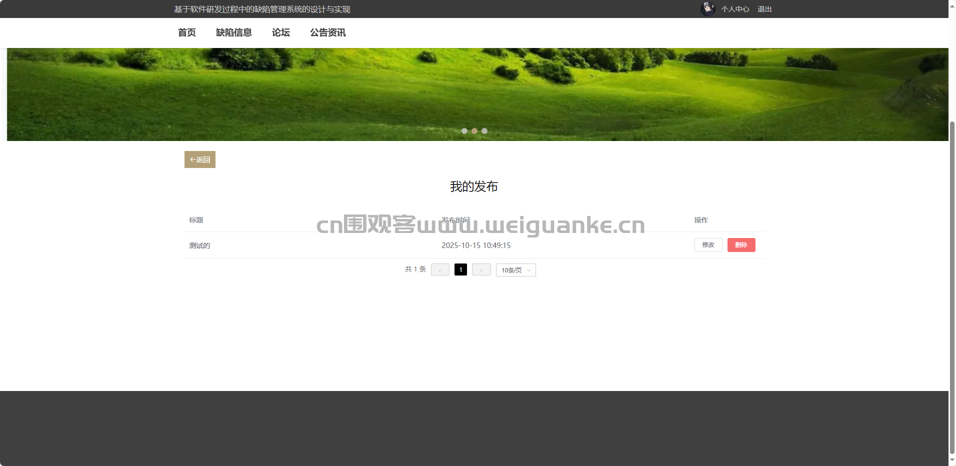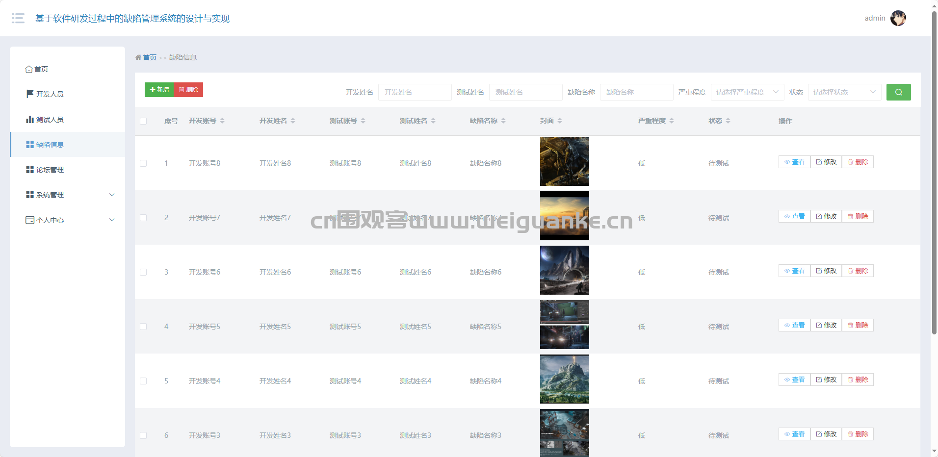 缺陷信息:查看、删除、修改所有缺陷单及状态。