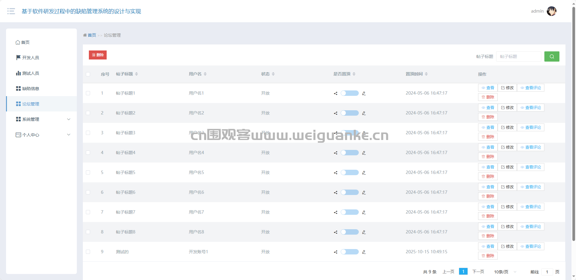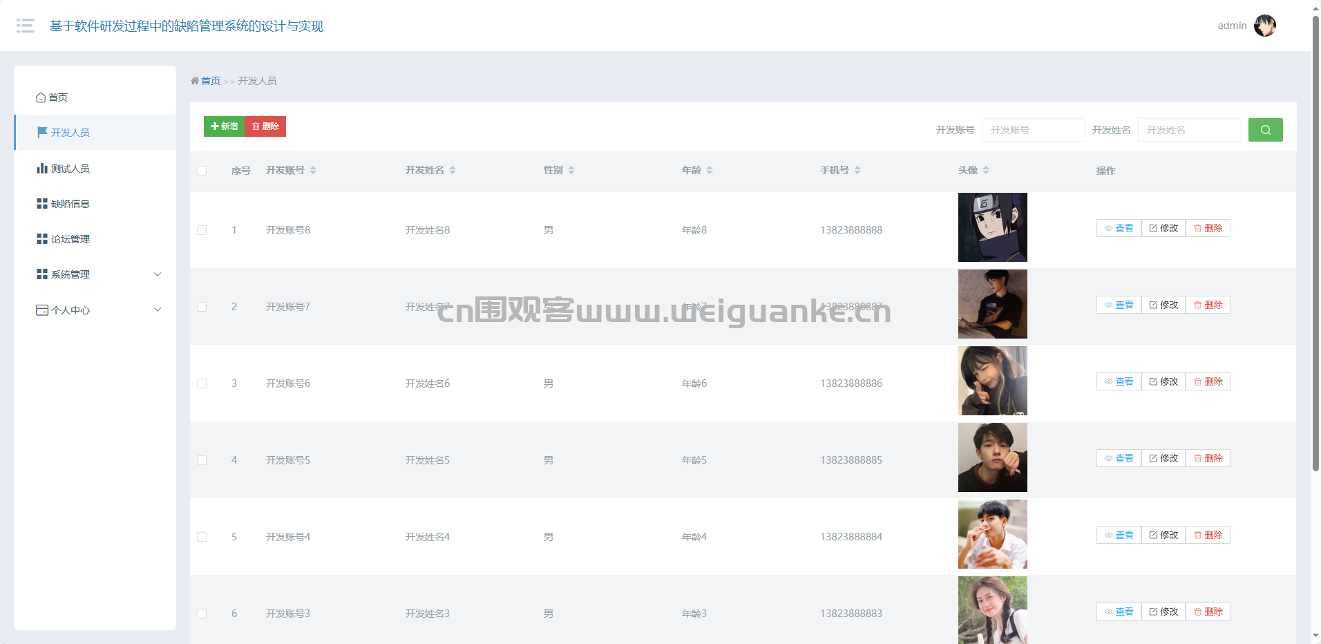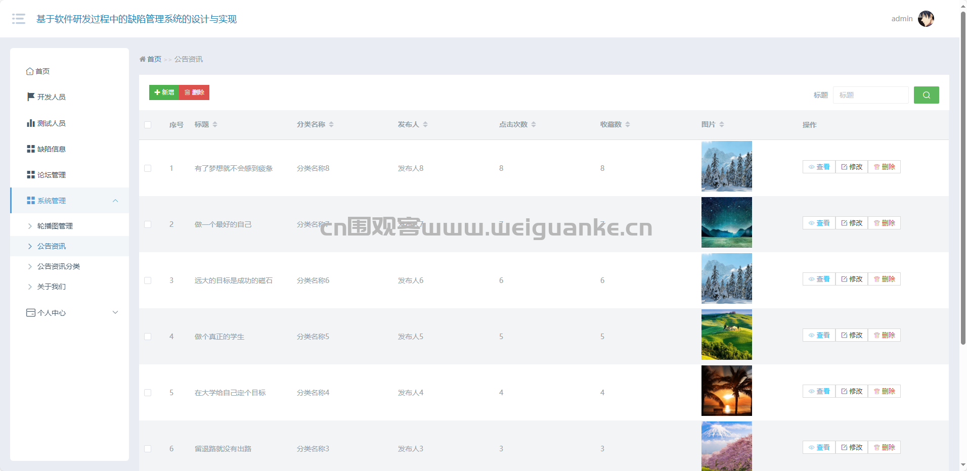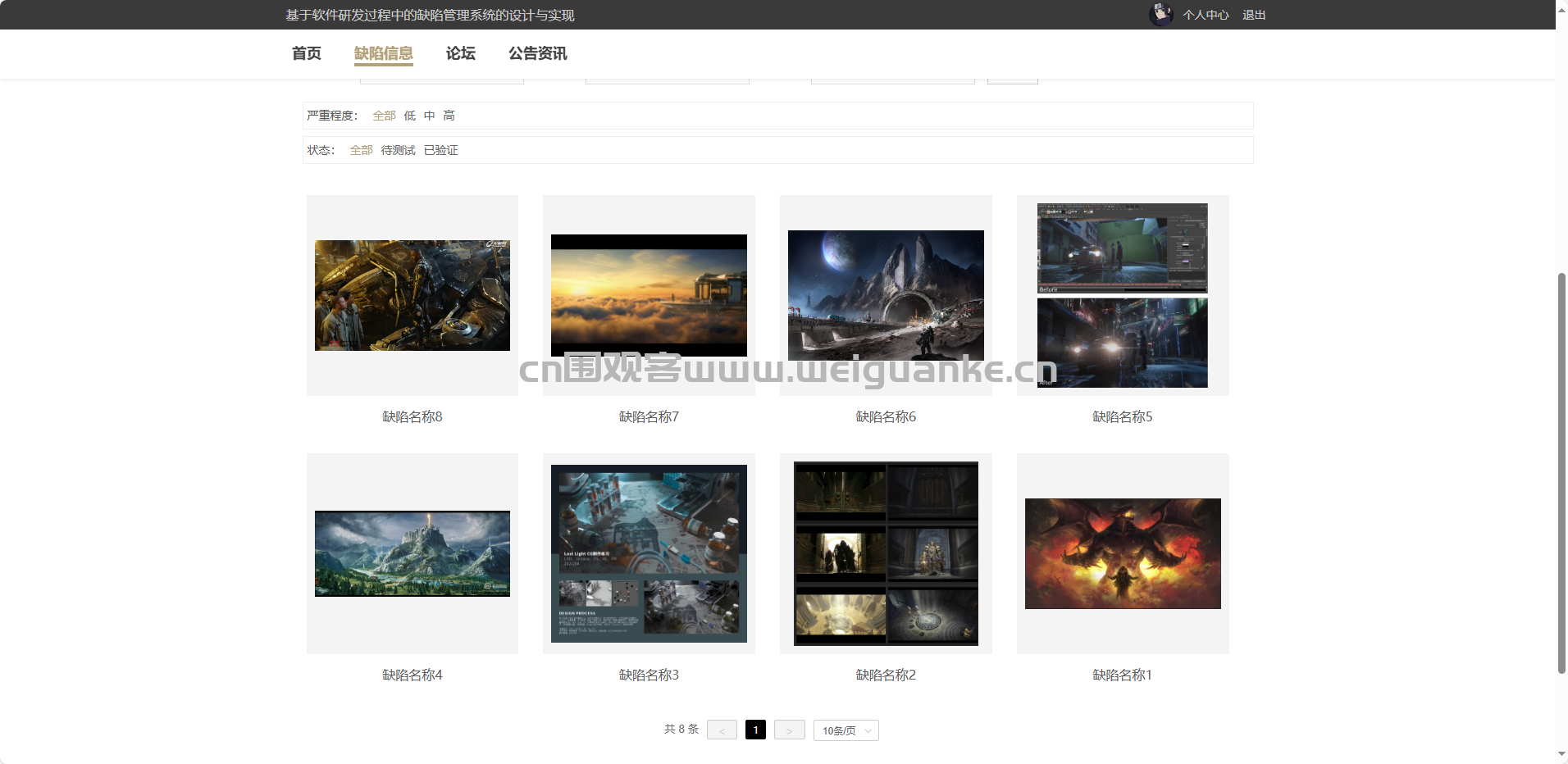 缺陷信息:查看、删除、修改所有缺陷单及状态。