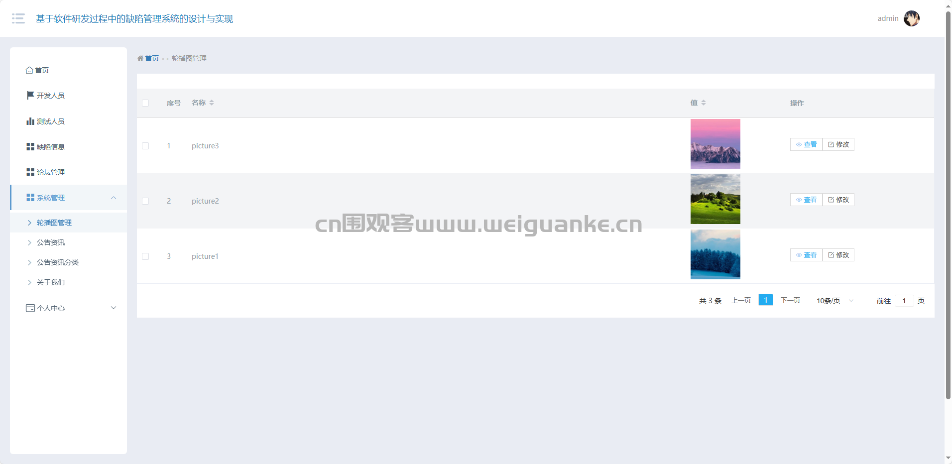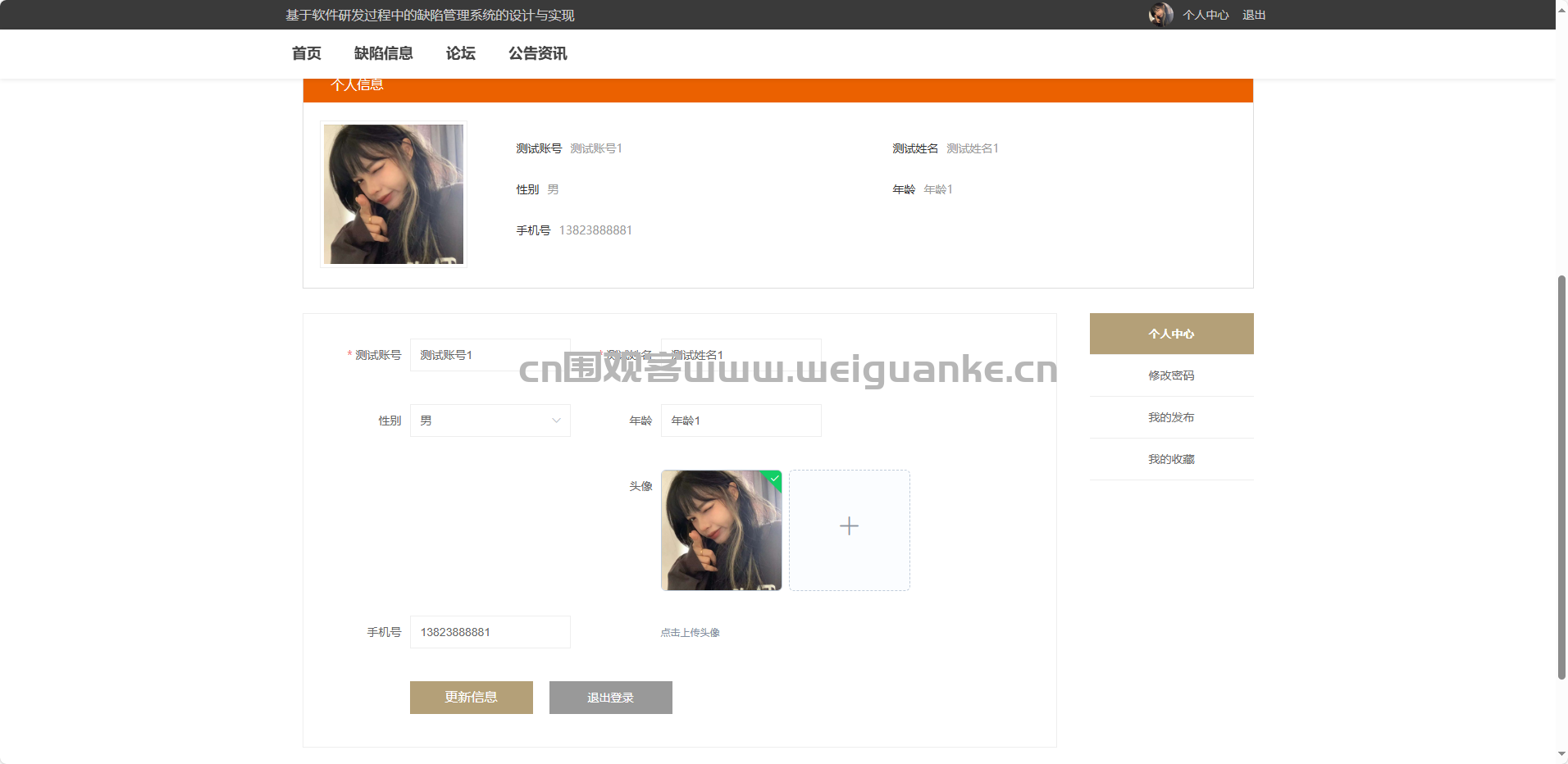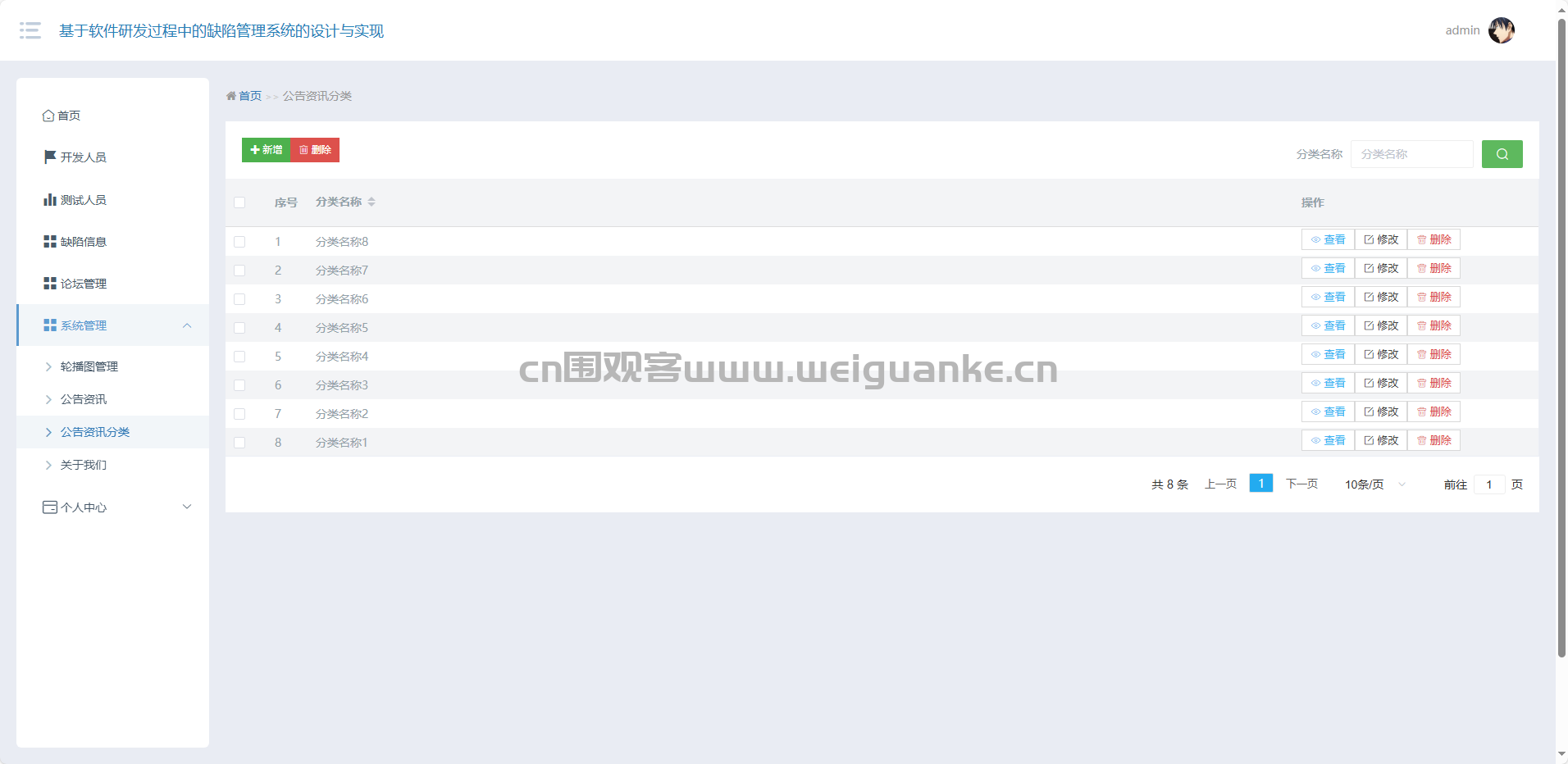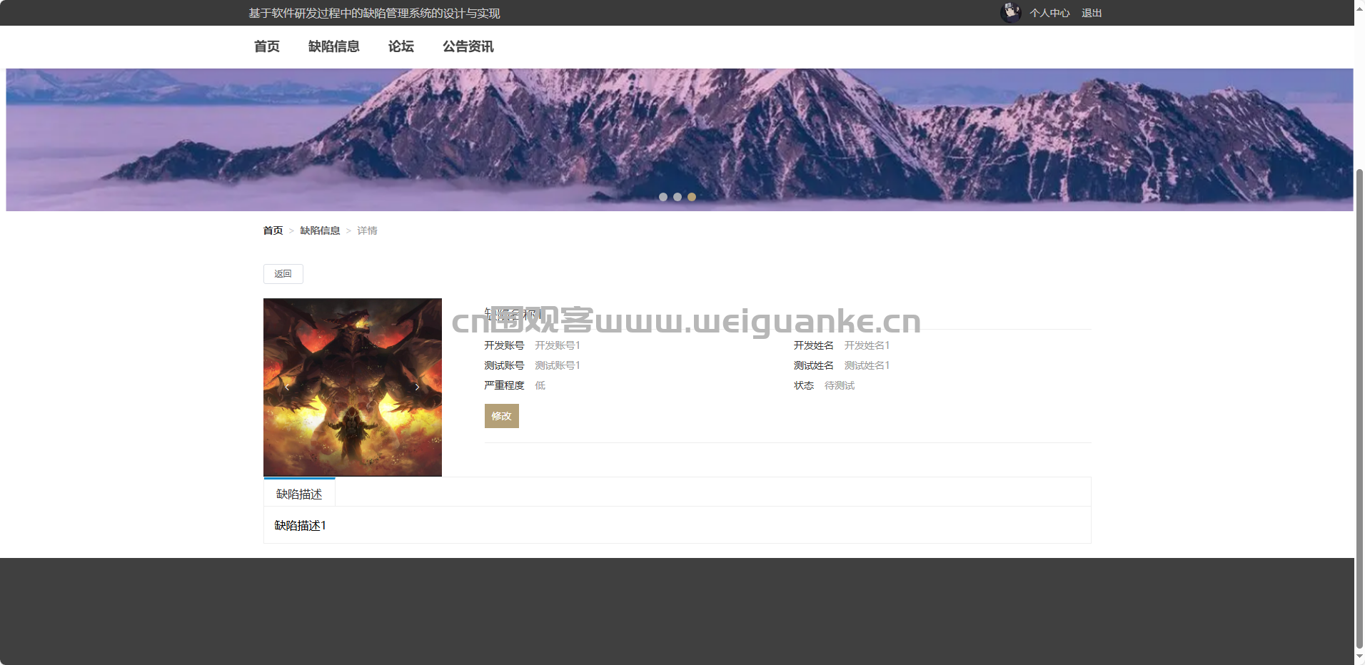 缺陷信息:查看、删除、修改所有缺陷单及状态。