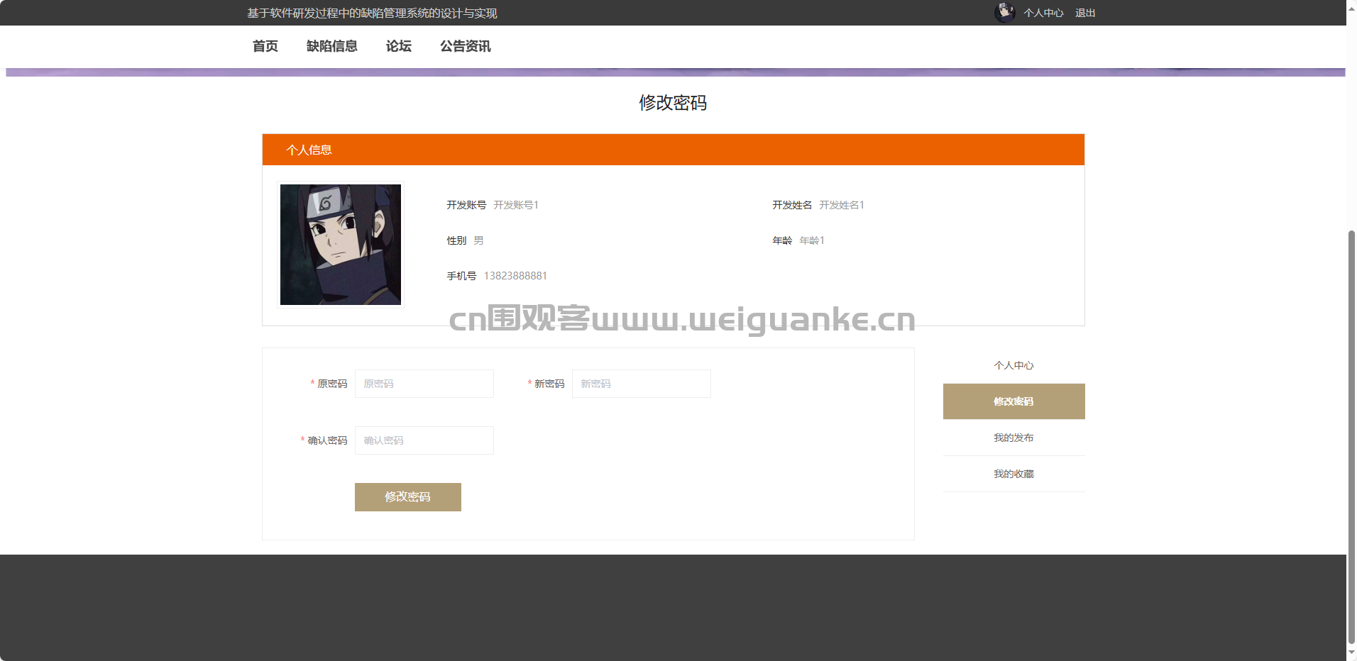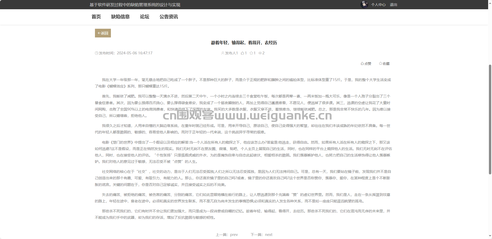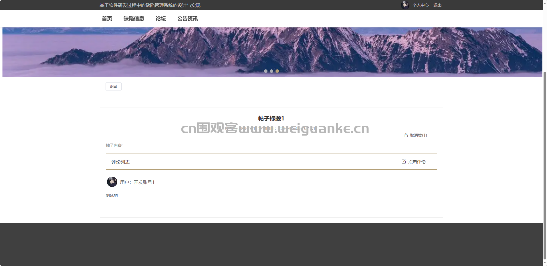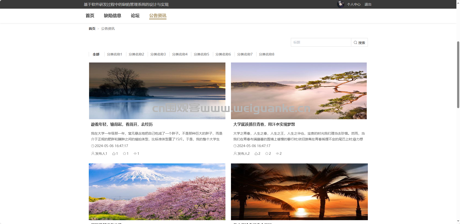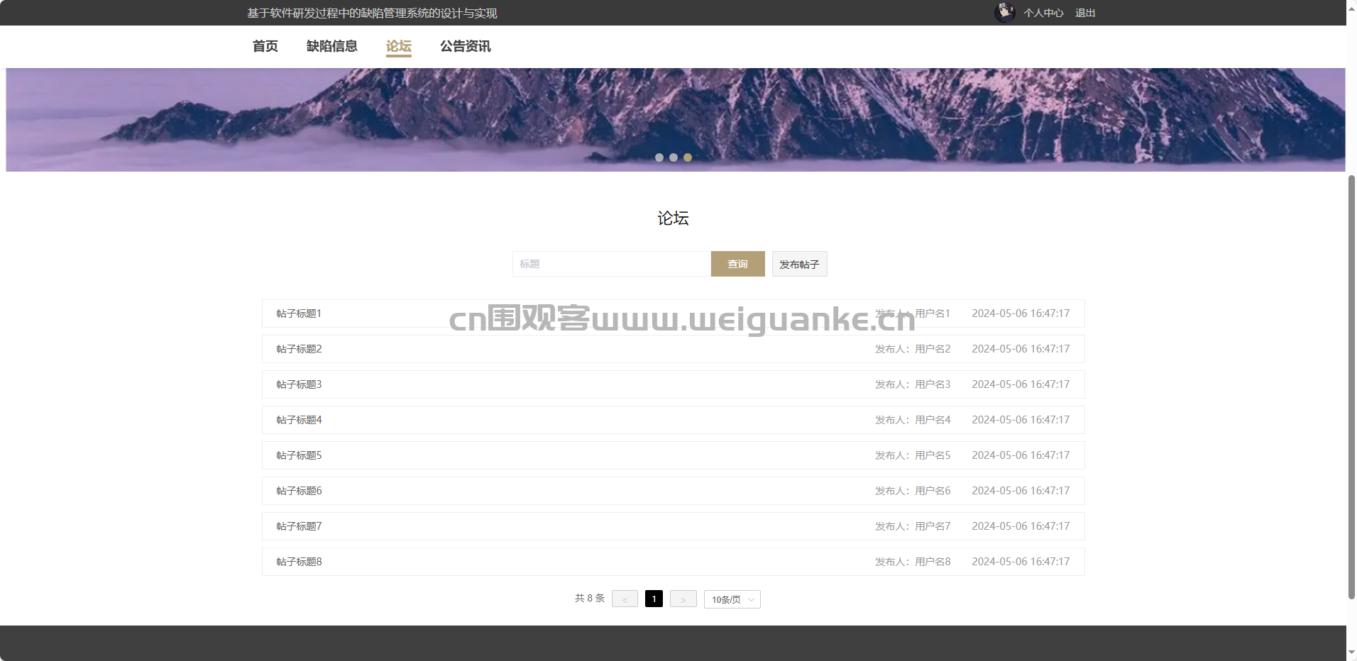 SpringBoot+Vue缺陷管理系统,测试人员提交缺陷、开发人员修复闭环,结合论坛与公告实现缺陷跟踪与团队协作,打造轻量级质量管理平台。