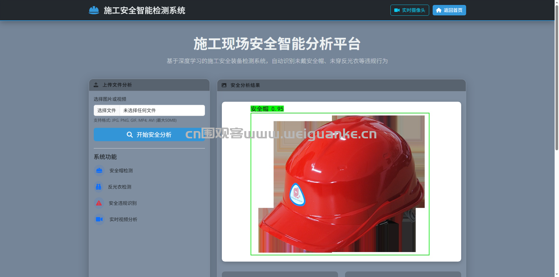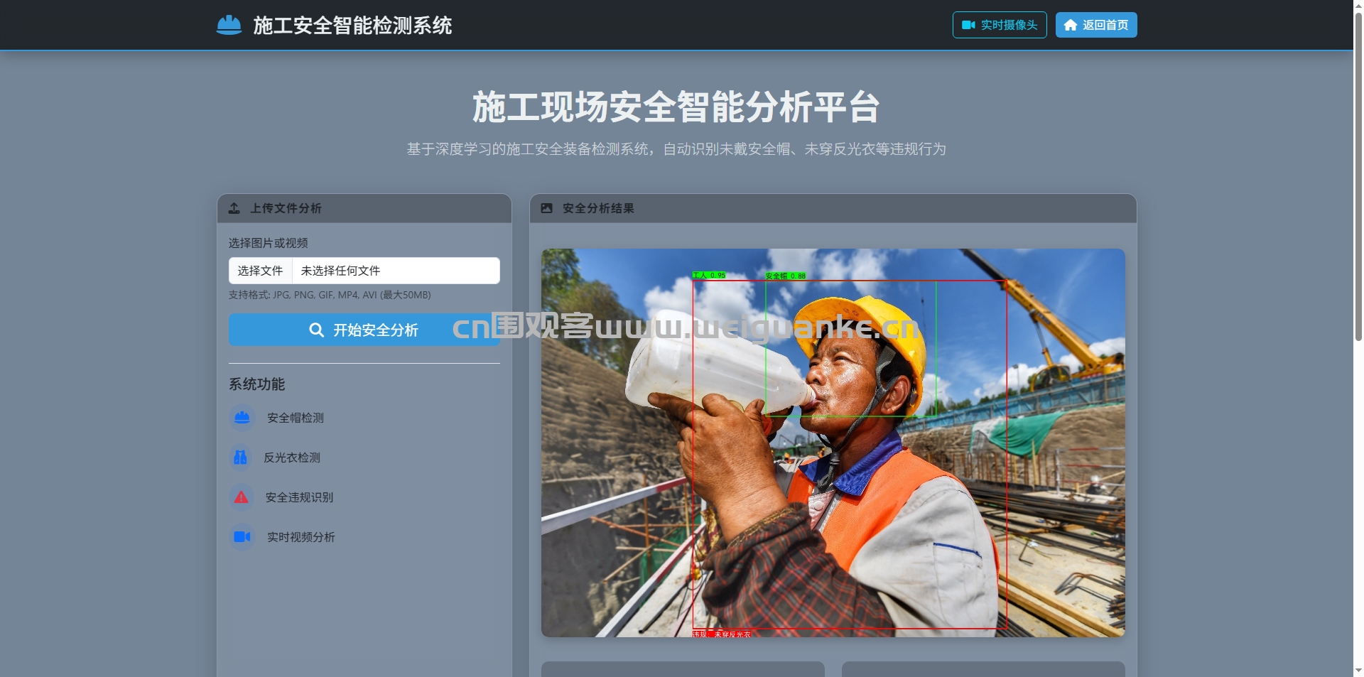 上传文件分析:上传视频图片检测 安全帽检测反光衣检测安全违规识别