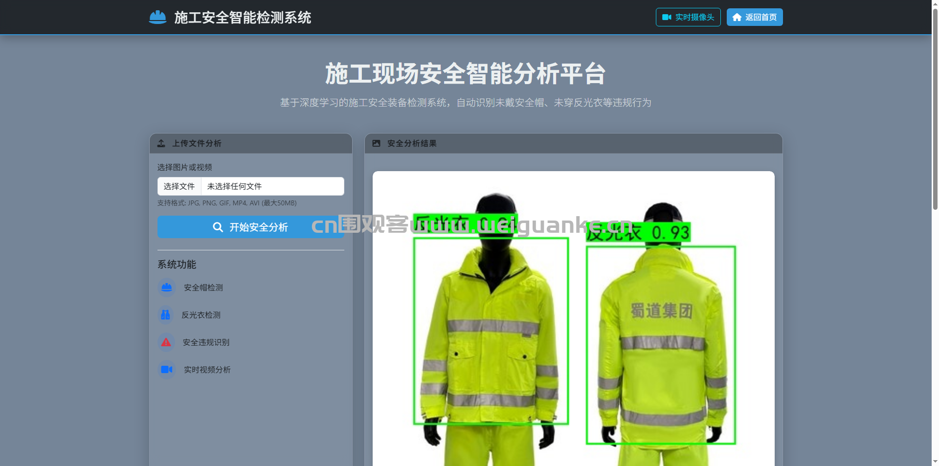 摄像头检测 :摄像头实时监测 安全帽检测反光衣检测安全违规识别