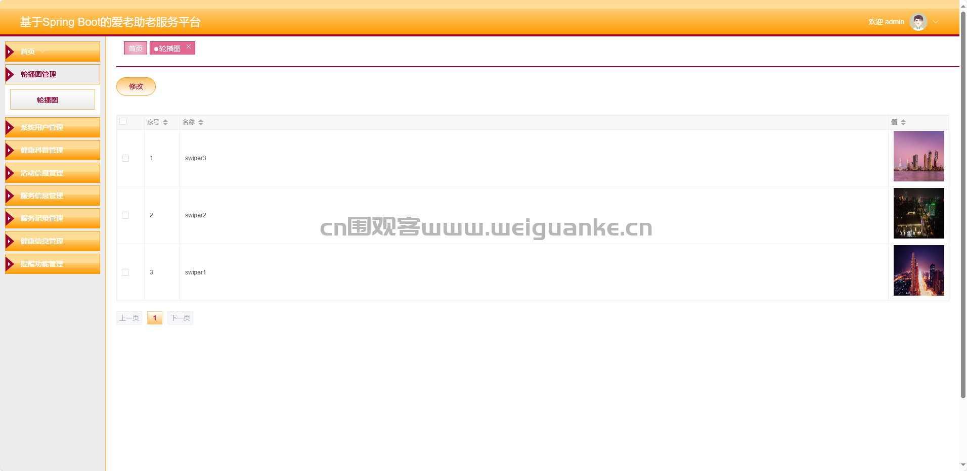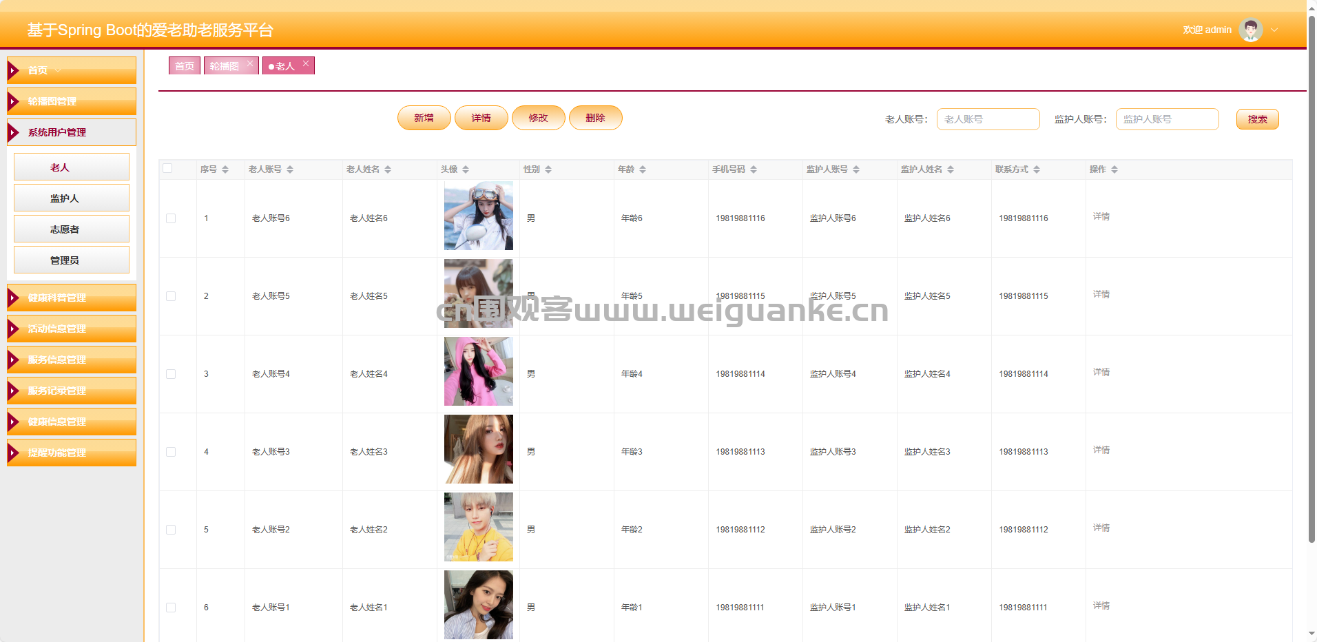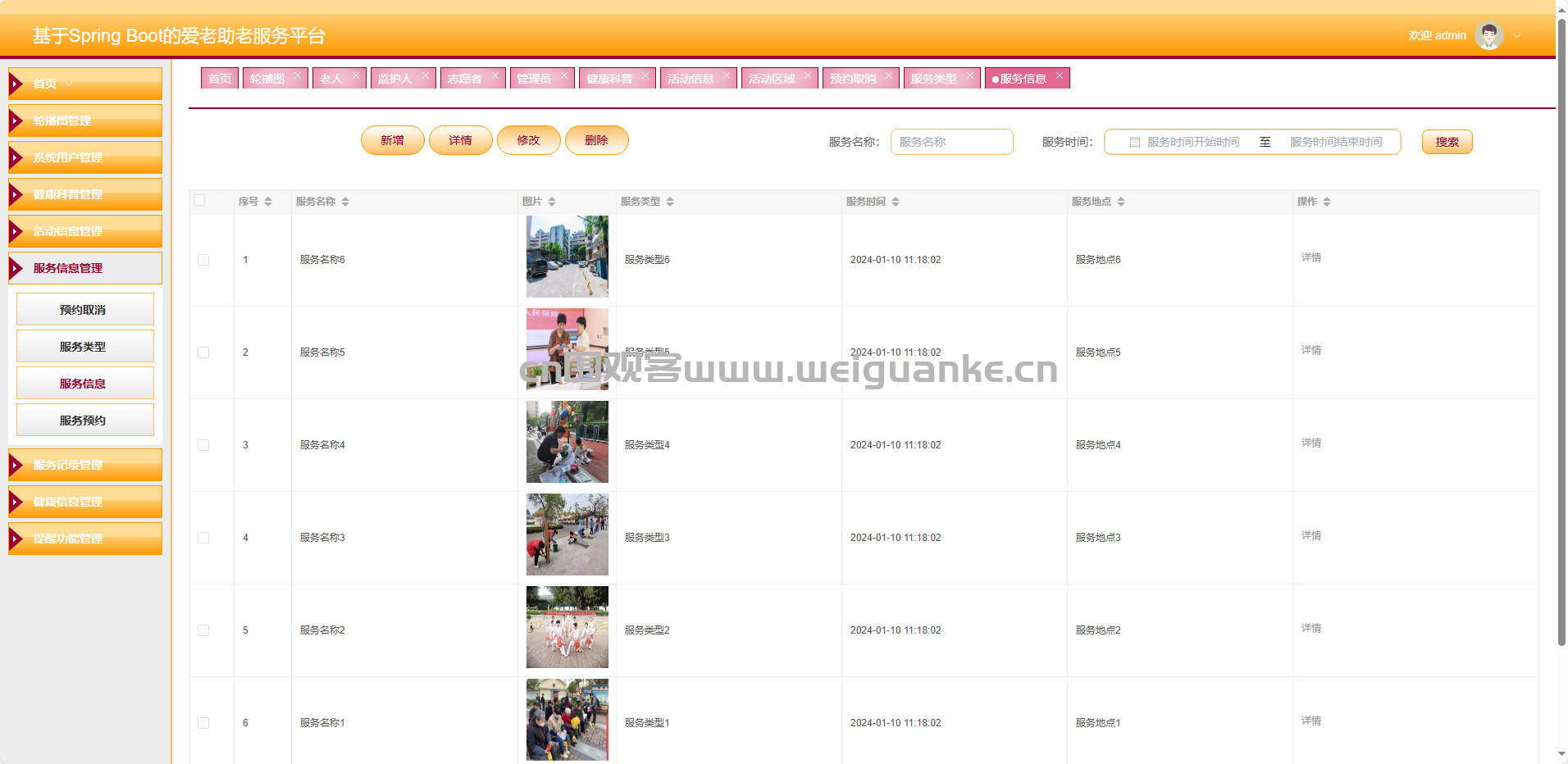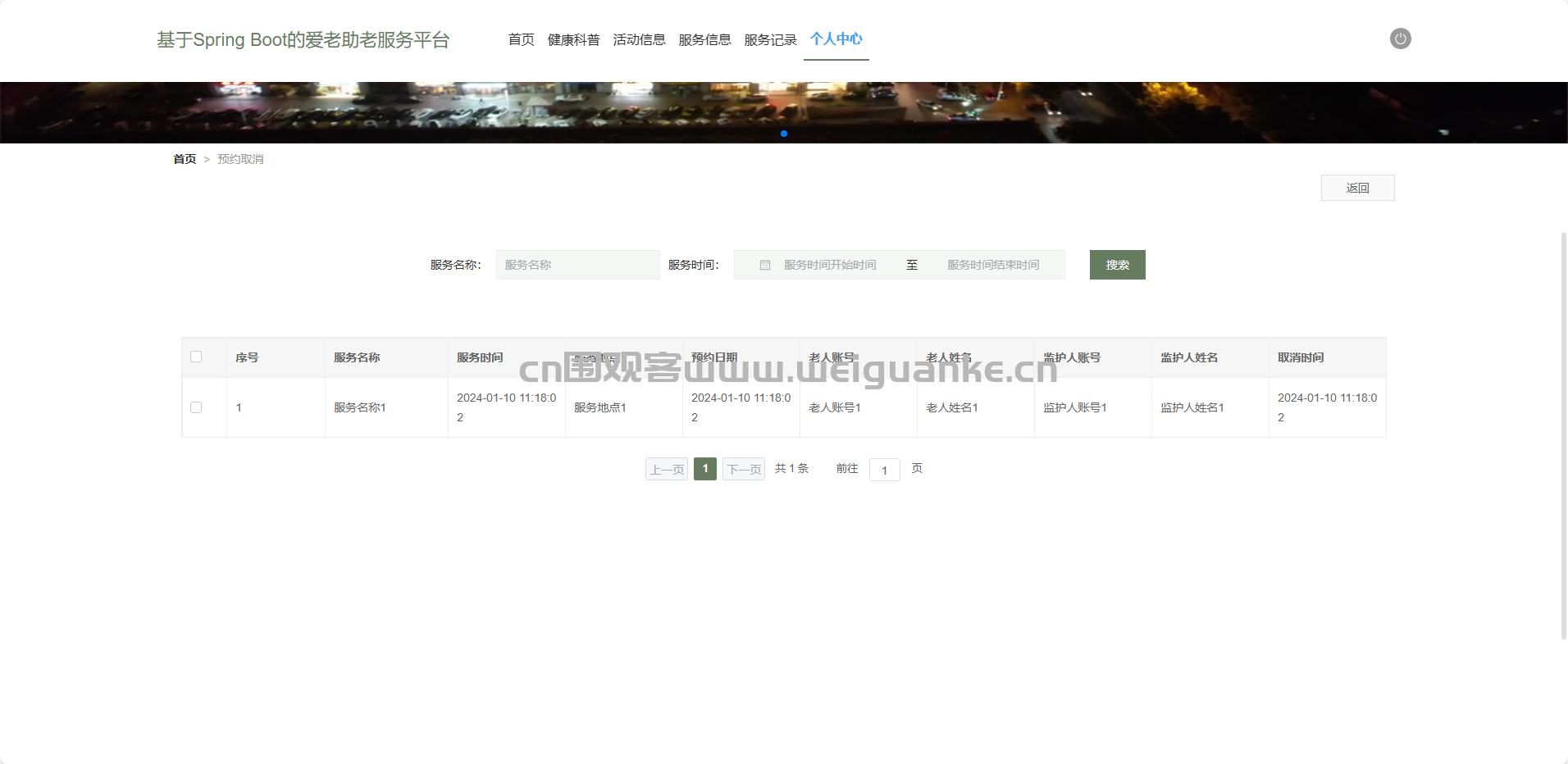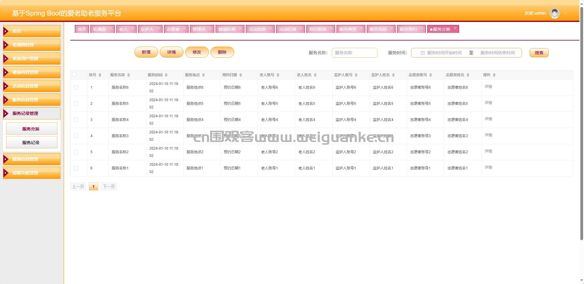 SpringBoot+Vue爱老助老服务平台,前端集成健康科普、活动与服务预约、健康数据记录及智能提醒,后端统一管理用户、活动、服务分派与健康信息,构建多方协同的数字化养老支持体系。
