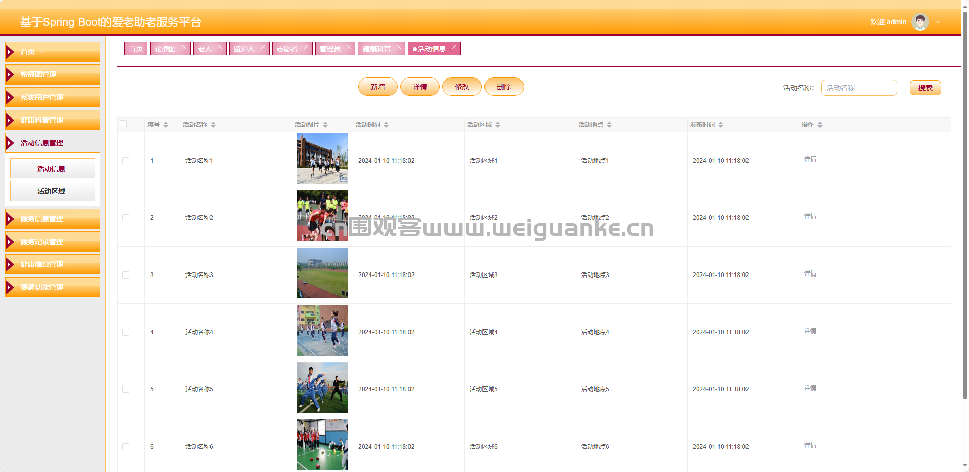 活动信息管理-活动信息:发布、修改、删除、查询养生活动。