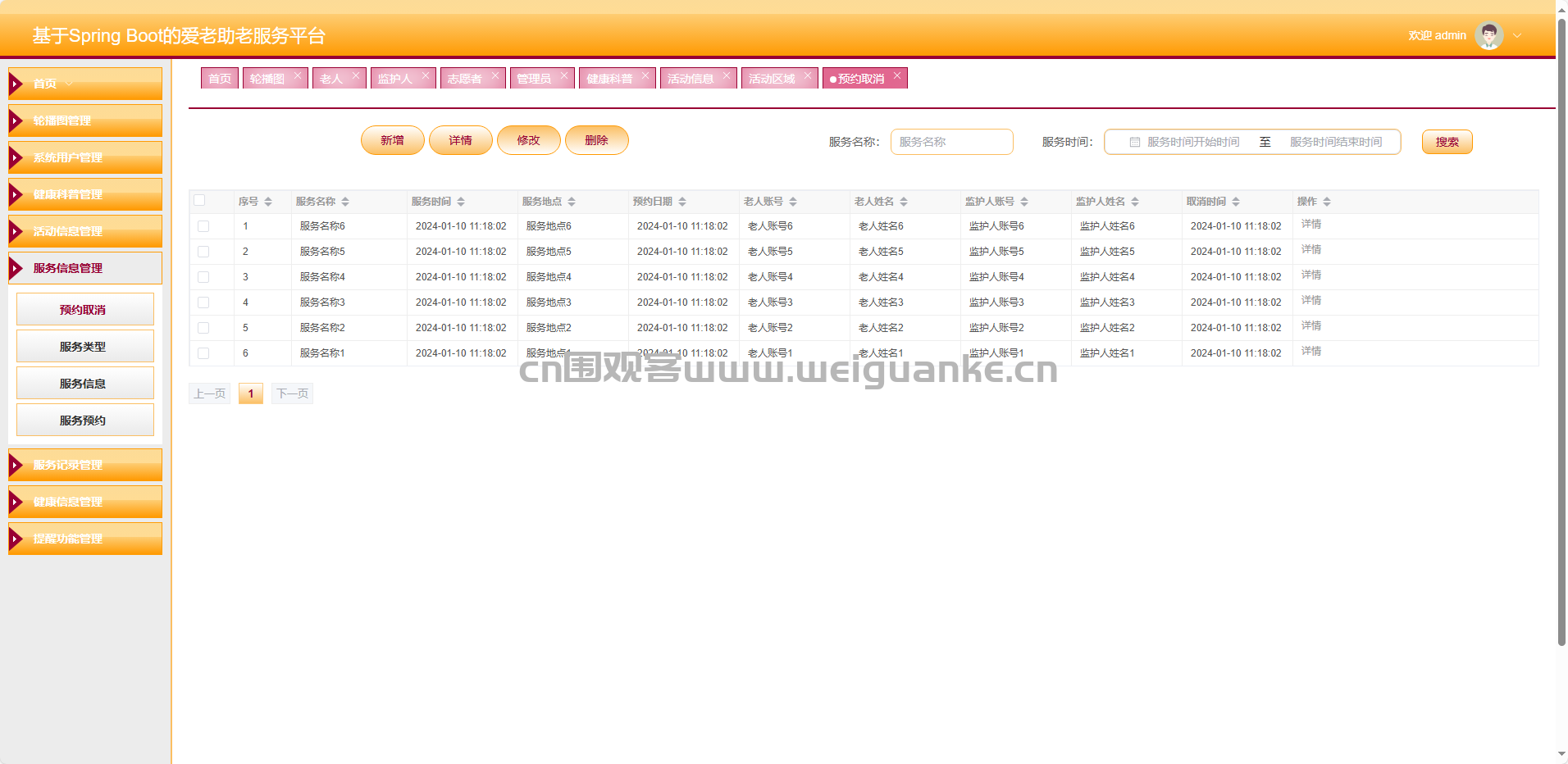 服务信息管理-预约取消:审核、删除、查询取消单。