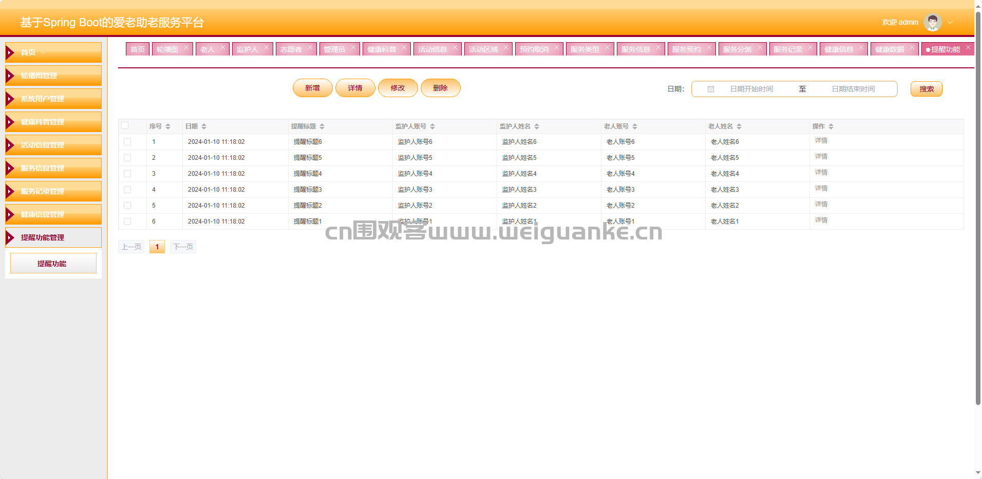 提醒功能管理:系统级新增、修改、删除、查询提醒模板。