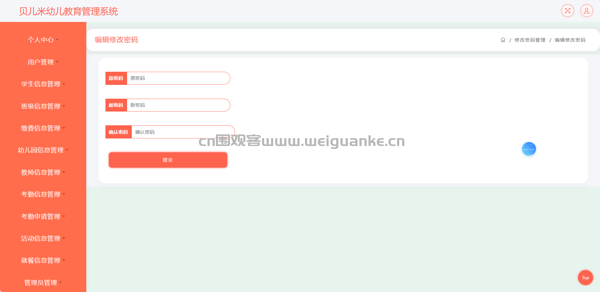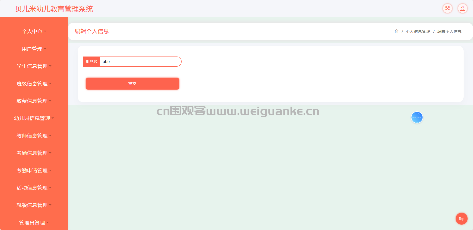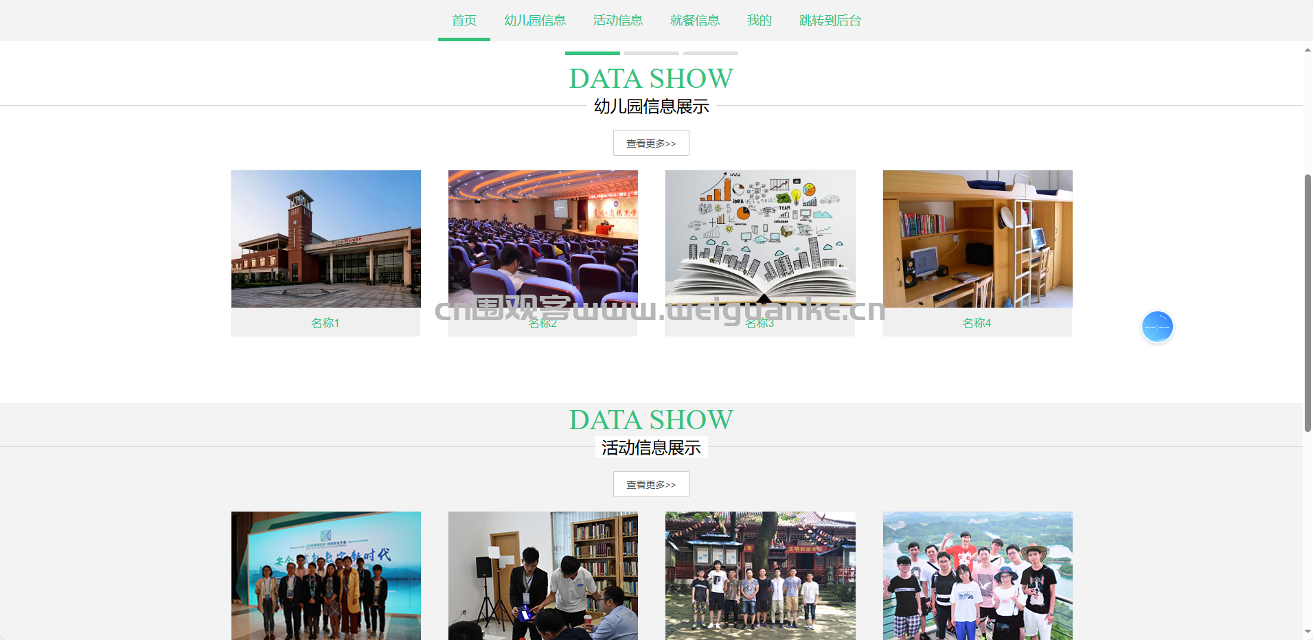 跳转到后台:教职工专属入口,点击即可进入园务管理与数据维护后台。