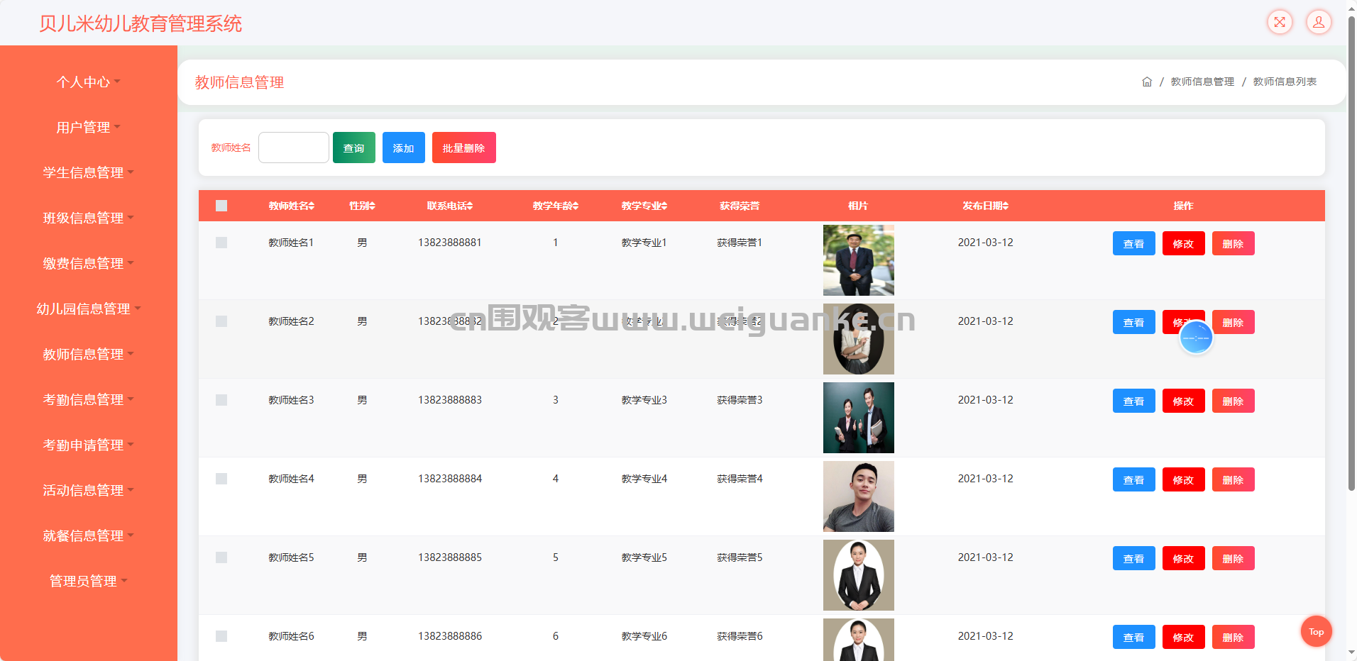 教师信息管理:教职工档案、职称、合同与评价一站式维护,支持一键排班。