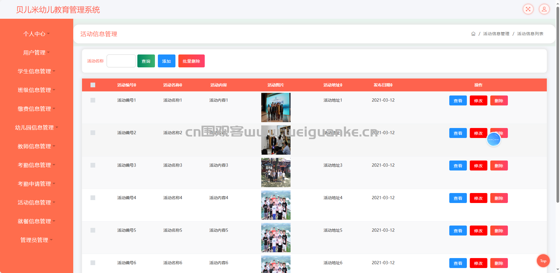 学生信息管理:维护幼儿基础档案、健康记录与成长轨迹,支持批量导入导出。