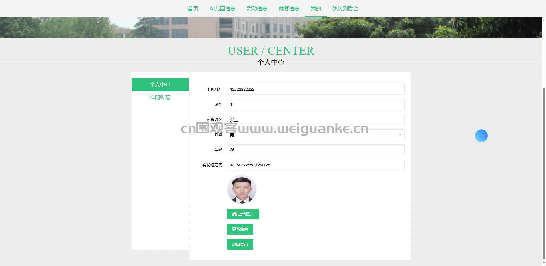 幼儿园信息管理:更新园所介绍、资质证书、联系方式及地理位置,前端同步展示。