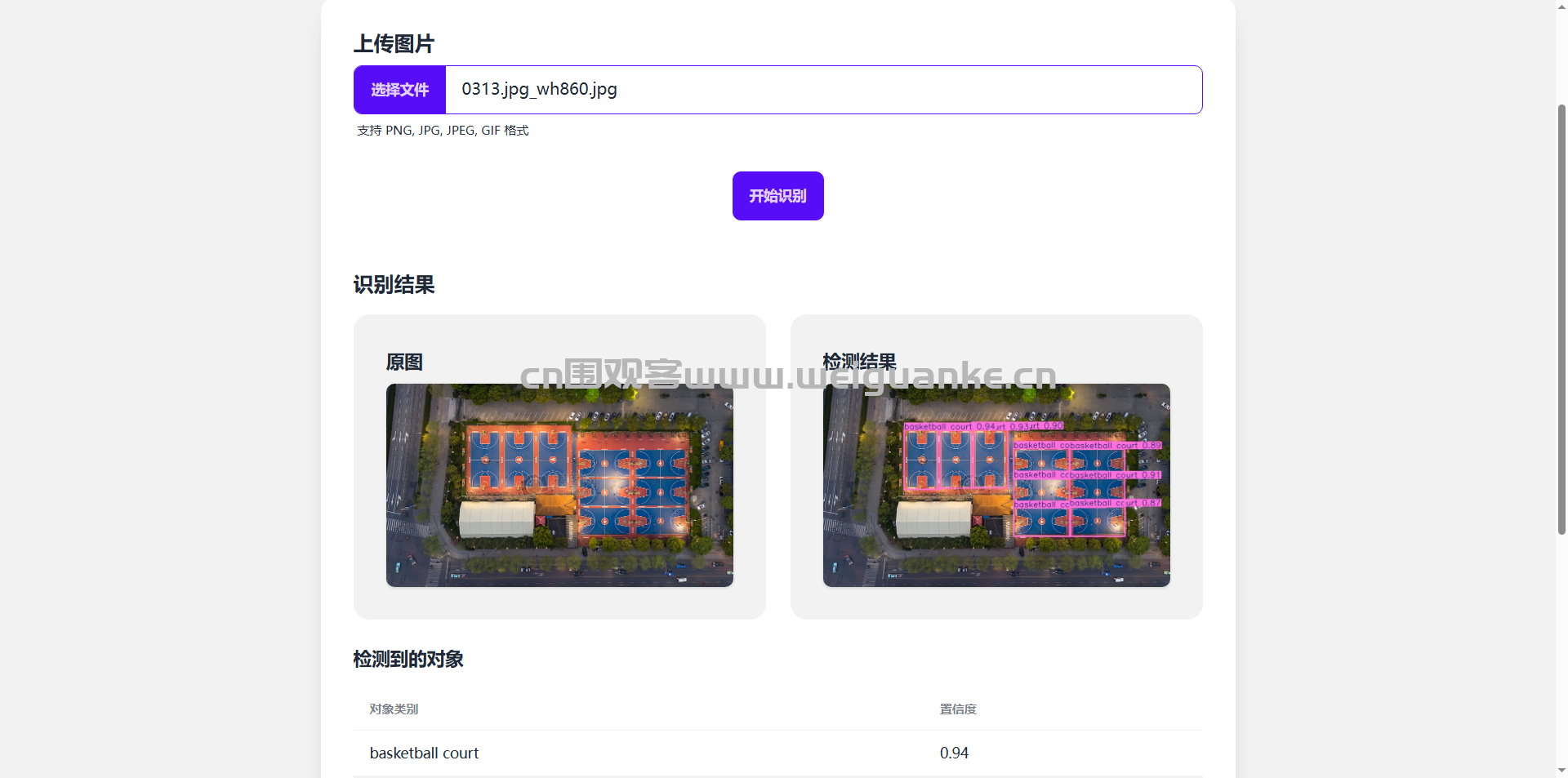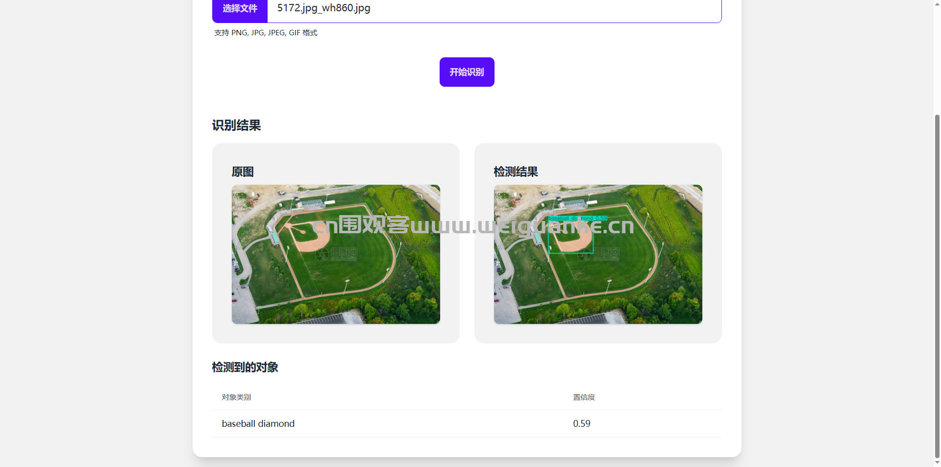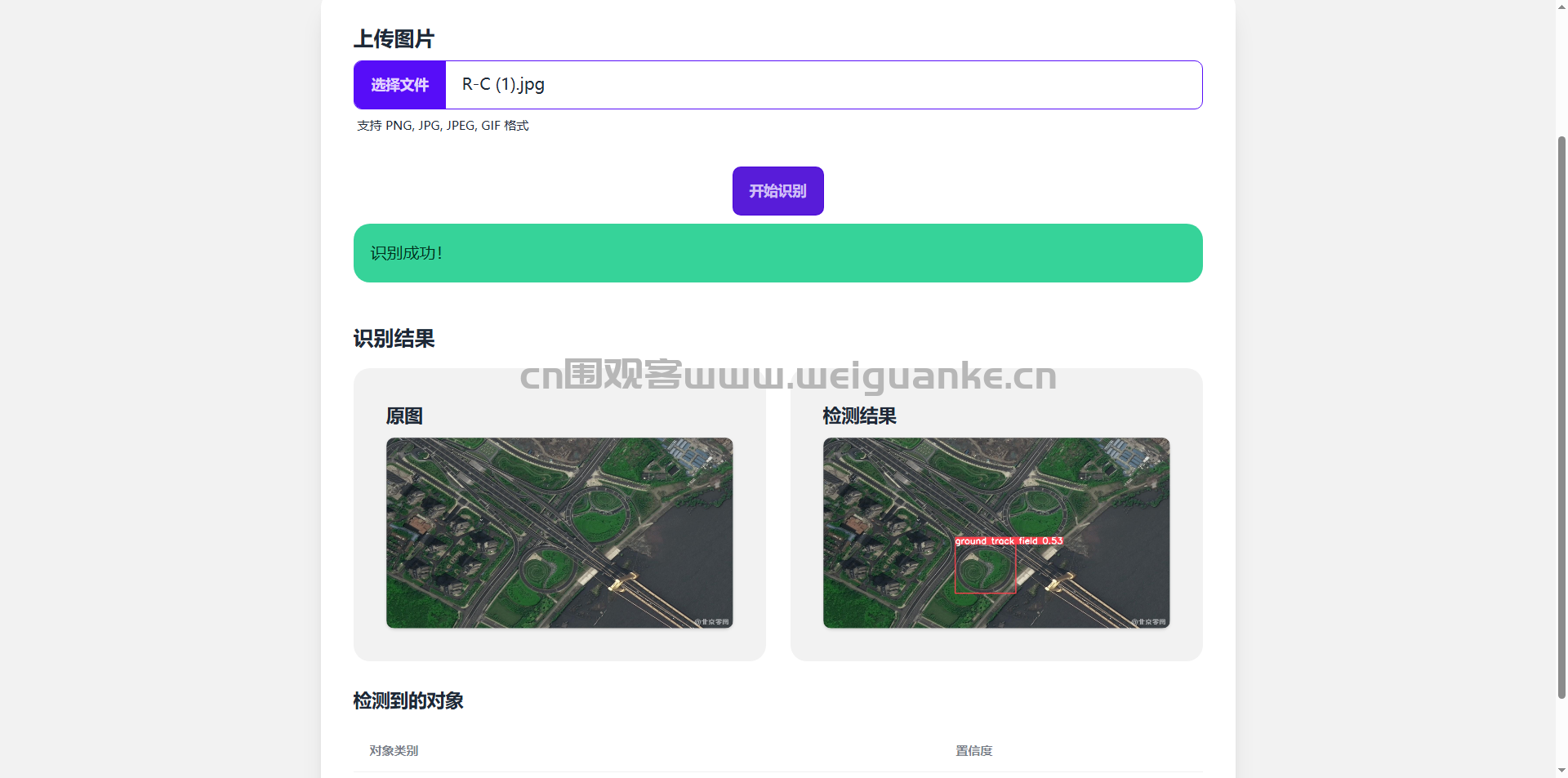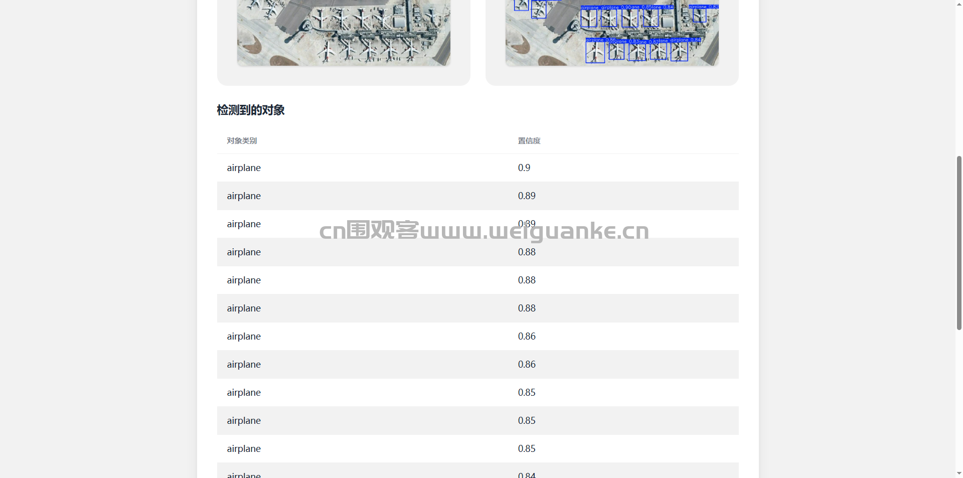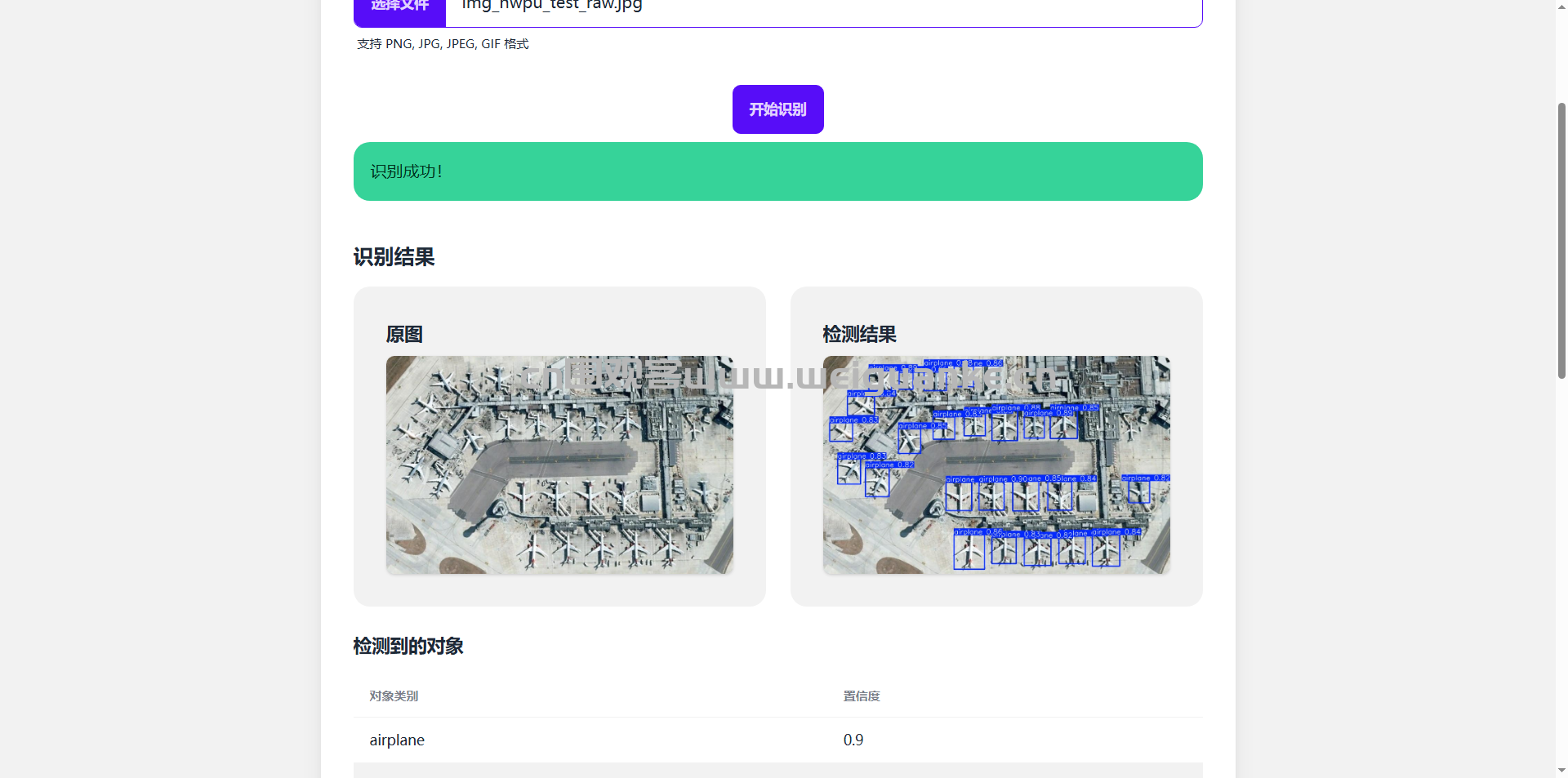 上传图片检测:可检测’飞机’,’船’,’储罐’,’棒球场’,’网球场’,’篮球场’,’场地田径’,’港口’,’桥’,’车辆’ 的俯视图/卫星图