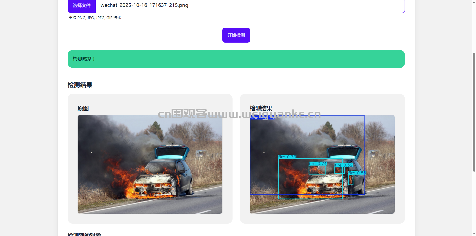 基于 flask + daisyUI+yolov8架构基于yolov8实现火灾车辆识别