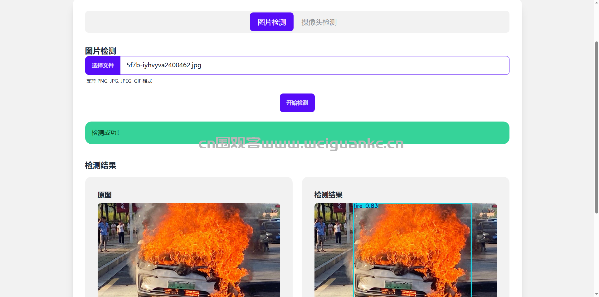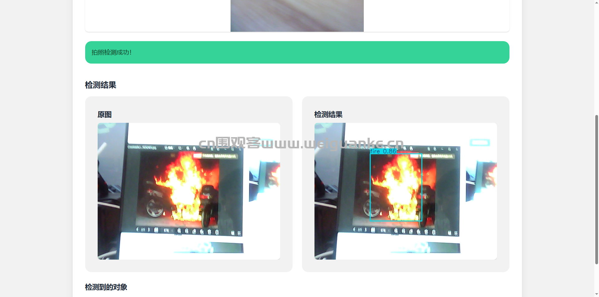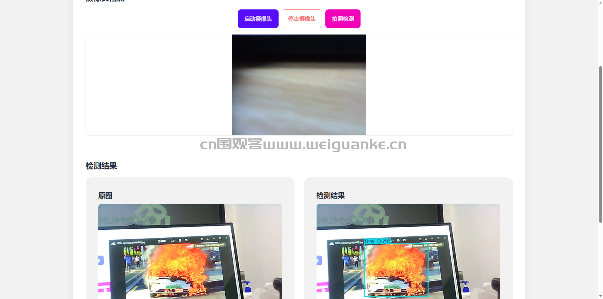 摄像头检测:摄像头拍照检测火灾和烟雾