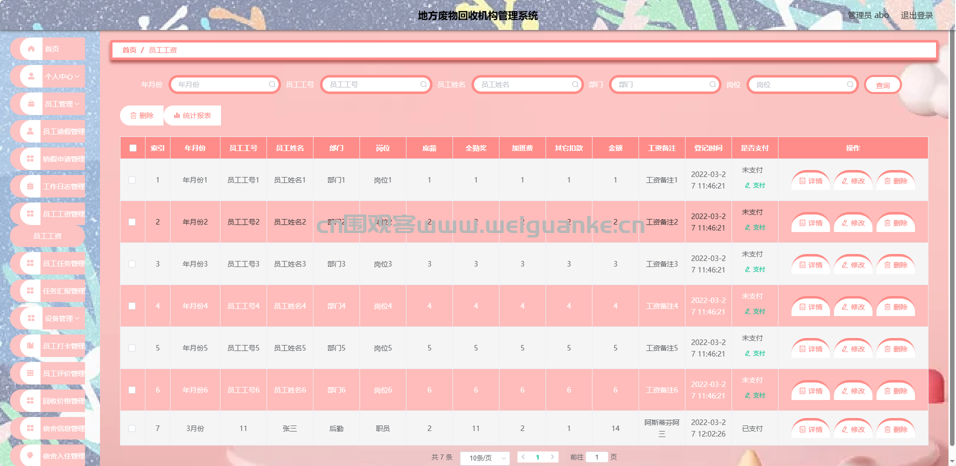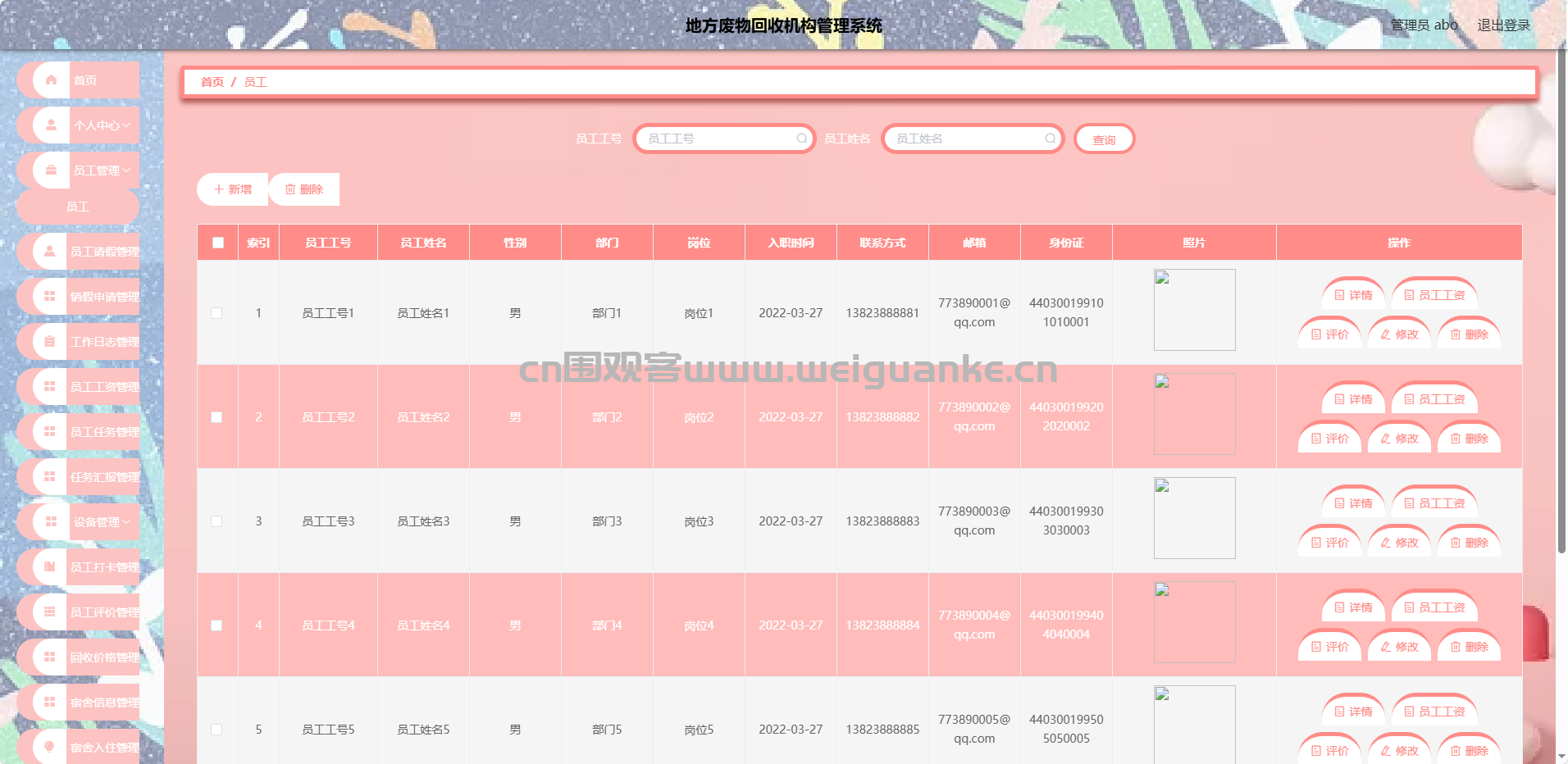 员工管理:统一管理员工档案、合同与异动,确保“人在档在”。